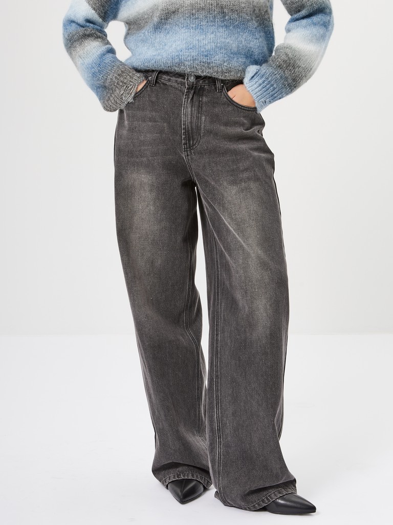 Женские джинсы средней посадки темно-серого цвета с легким эффектом потертости. Свободный крой и универсальный оттенок делают их идеальными для сочетания с разными вещами — от простых футболок до элегантных блуз. Подходят для повседневной носки, прогулок или неформального офисного стиля. Эффект потертости добавляет изделию характер и делает образ более расслабленным. Практичный и стильный выбор, который легко впишется в любой гардероб. Идеальны для создания как casual-образов, так и более утонченных комбинаций.