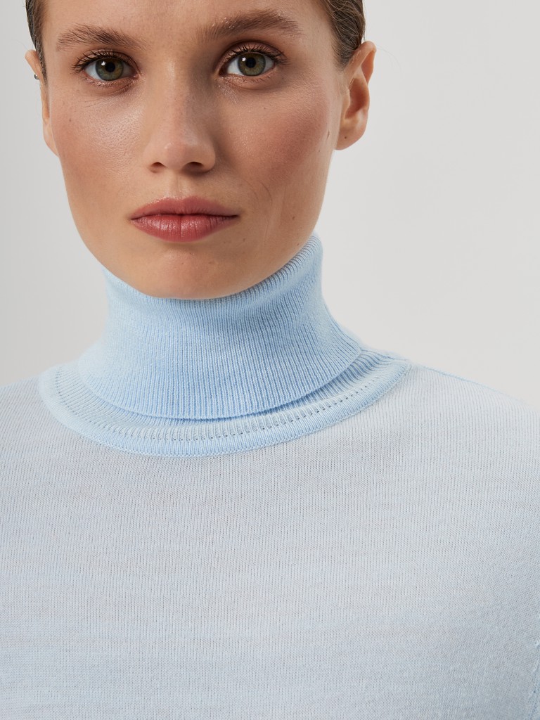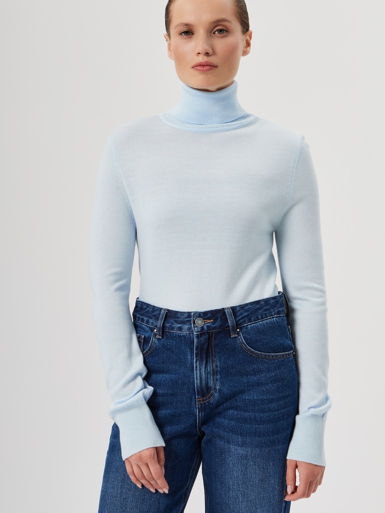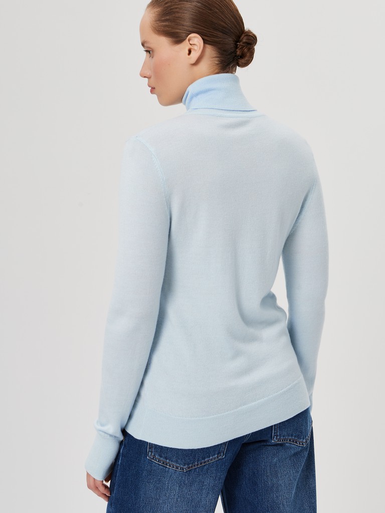 Базовый женский джемпер с воротником стойкой - основа многослойных образов с жакетами или куртками. Комфортная классическая модель, длинный рукав. Изделие выполнено из смесовой пряжи гладкой вязки - такой трикотаж хорошо держит форму, оставаясь при этом мягким и пластичным.