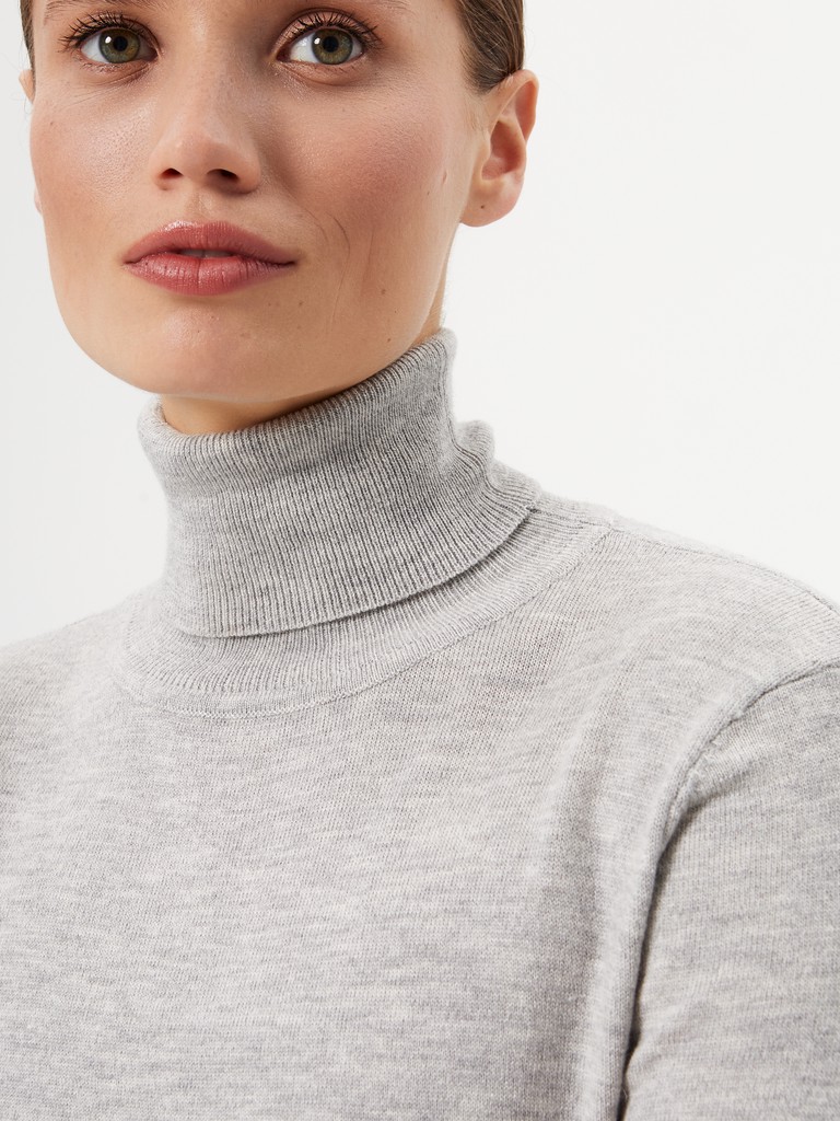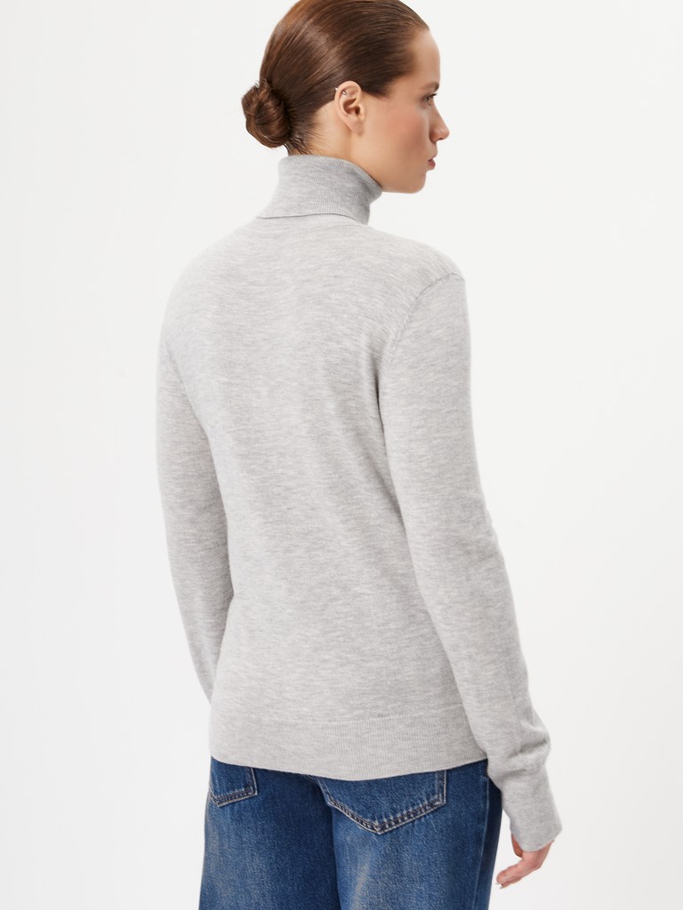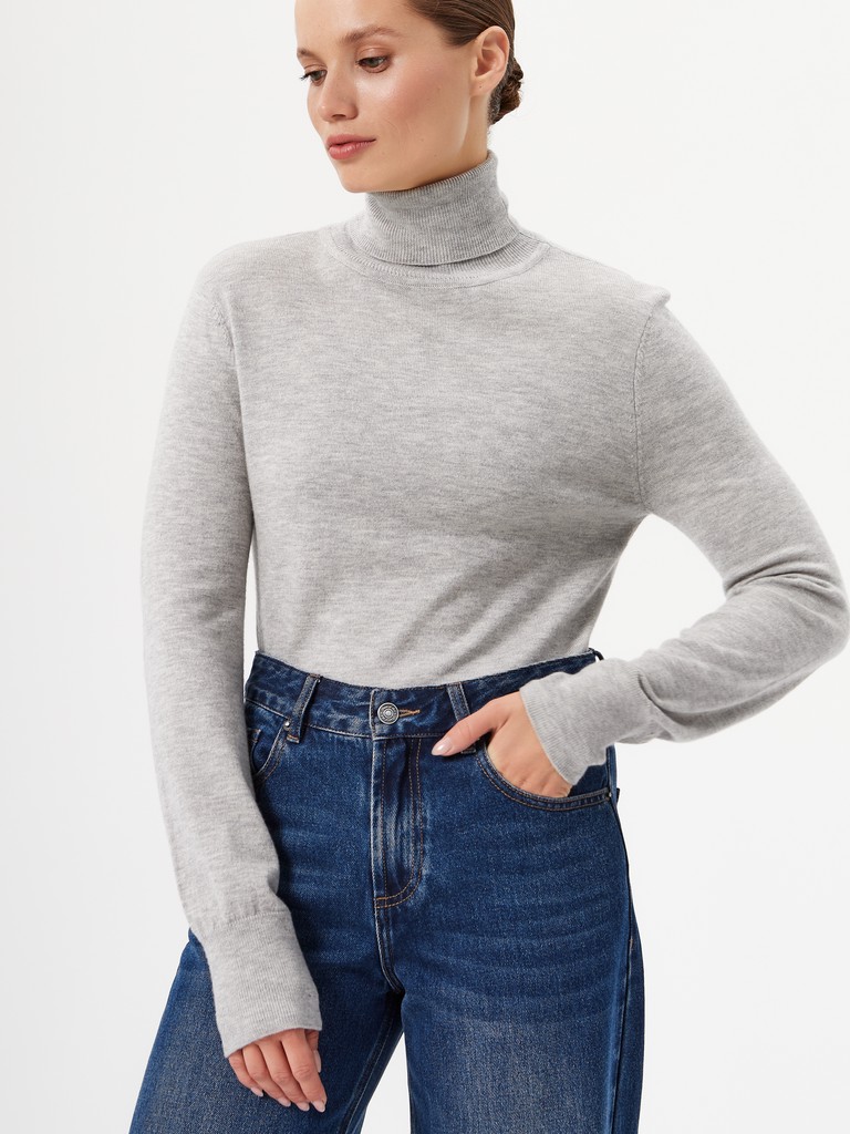 Базовый женский джемпер с воротником стойкой - основа многослойных образов с жакетами или куртками. Комфортная классическая модель, длинный рукав. Изделие выполнено из смесовой пряжи гладкой вязки - такой трикотаж хорошо держит форму, оставаясь при этом мягким и пластичным.