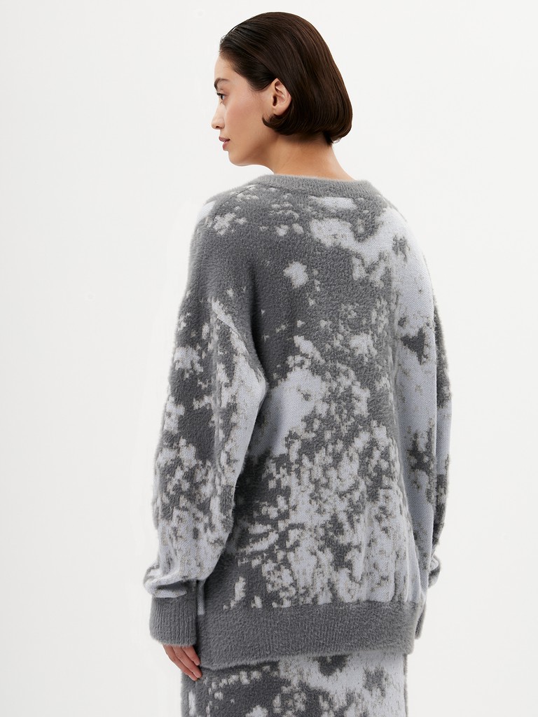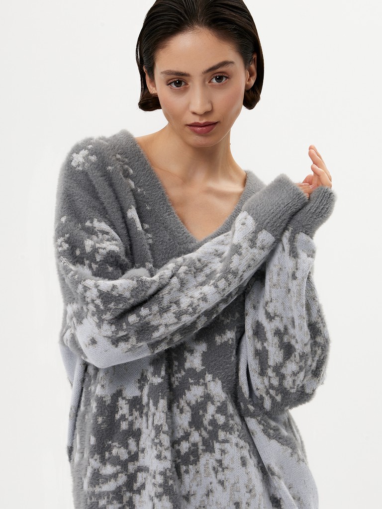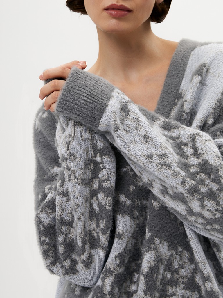 Объемный женский джемпер — уютный, с комфортной резинкой и широкими рукавами. Оверсайз силуэт позволяет легко вписать его в любой гардероб. Благодаря мохристой вязке трикотаж получается ворсистым и немного пушистым. В пару к изделию предлагается трикотажная юбка из нашей коллекции.