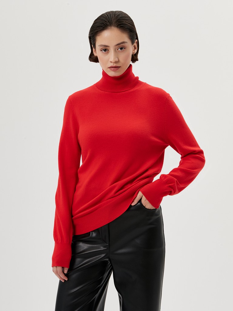 Базовый женский джемпер с воротником стойкой - основа многослойных образов с жакетами или куртками. Комфортная классическая модель, длинный рукав. Изделие выполнено из смесовой пряжи гладкой вязки - такой трикотаж хорошо держит форму, оставаясь при этом мягким и пластичным.