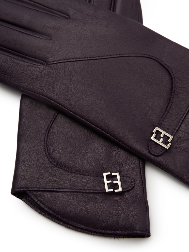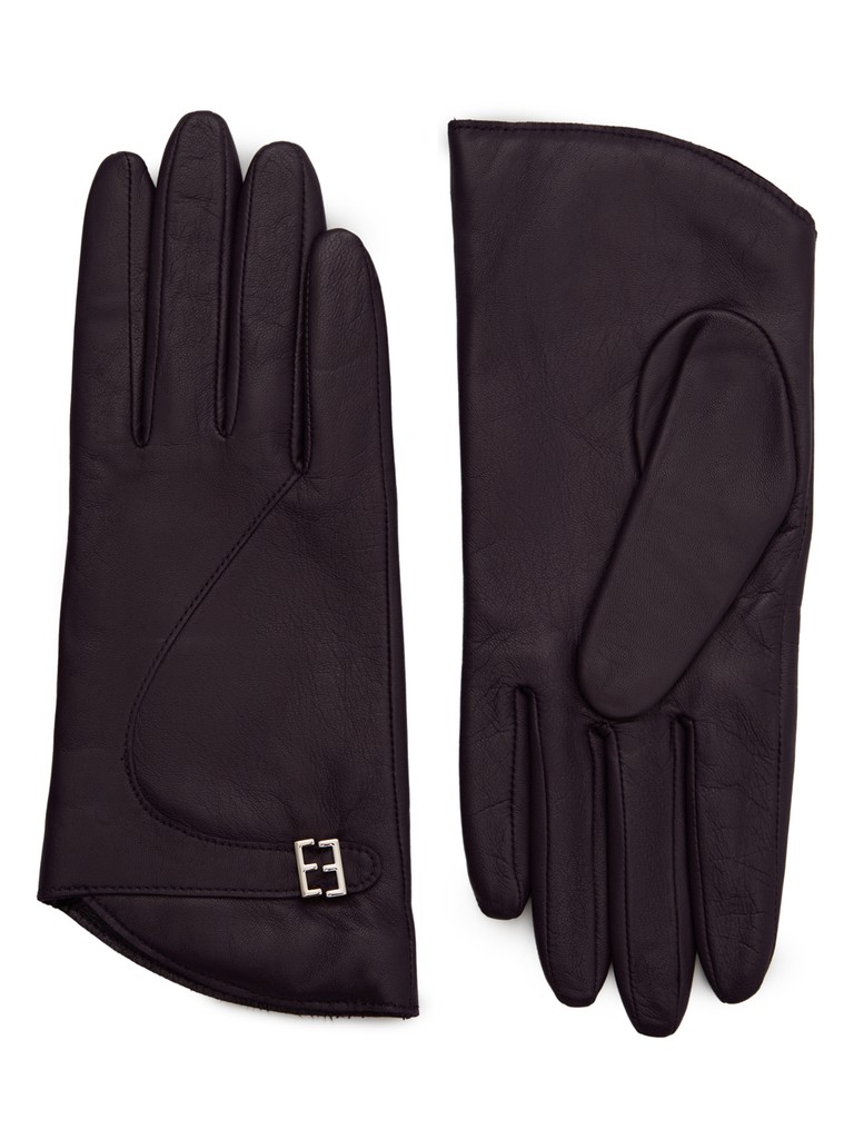 Перчатки женские торговой марки ELEGANZZA в трендовом черничном цвете из высококачественной натуральной кожи ягненка. Элегантные акценты:фигурный ремешок с фирменной фурнитурой и ассиметричный крой. Модель выполнена на подкладе из мягкой шерсти со средней длиной пальцев и длиной манжеты от нижней точки большого пальца до края перчаток - 4 см.
