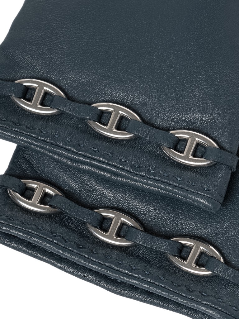 Перчатки женские торговой марки ELEGANZZA. Выполнены из высококачественной натуральной кожи ягненка в трендовом цвете на подкладе из мягкой шерсти. Украшены ажурной продержкой тонким кожаным шнурком с овальной фурнитурой, что создает сложный впечатляющий узор на лицевой части перчатки. Деликатная ручная работа. Модель со средней длиной пальцев и длиной манжеты от нижней точки большого пальца до края перчаток - 4.5 см.
