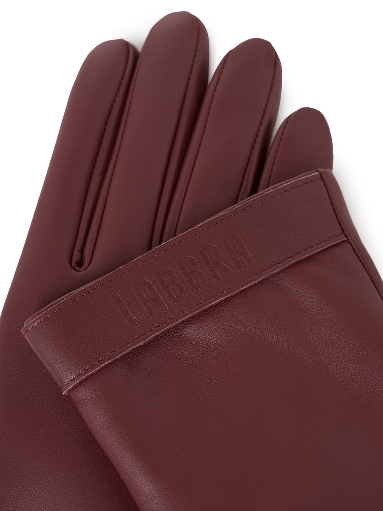 Перчатки женские торговой марки LABBRA производства Китай выполнены из натуральной кожи ягнёнка. Подкладка: 70% шерсть, 30% акрил. Отделка - манжет с тиснением символики бренда. Длина манжеты от нижней точки большого пальца до края перчаток - 5 см. Длина пальцев - средняя.