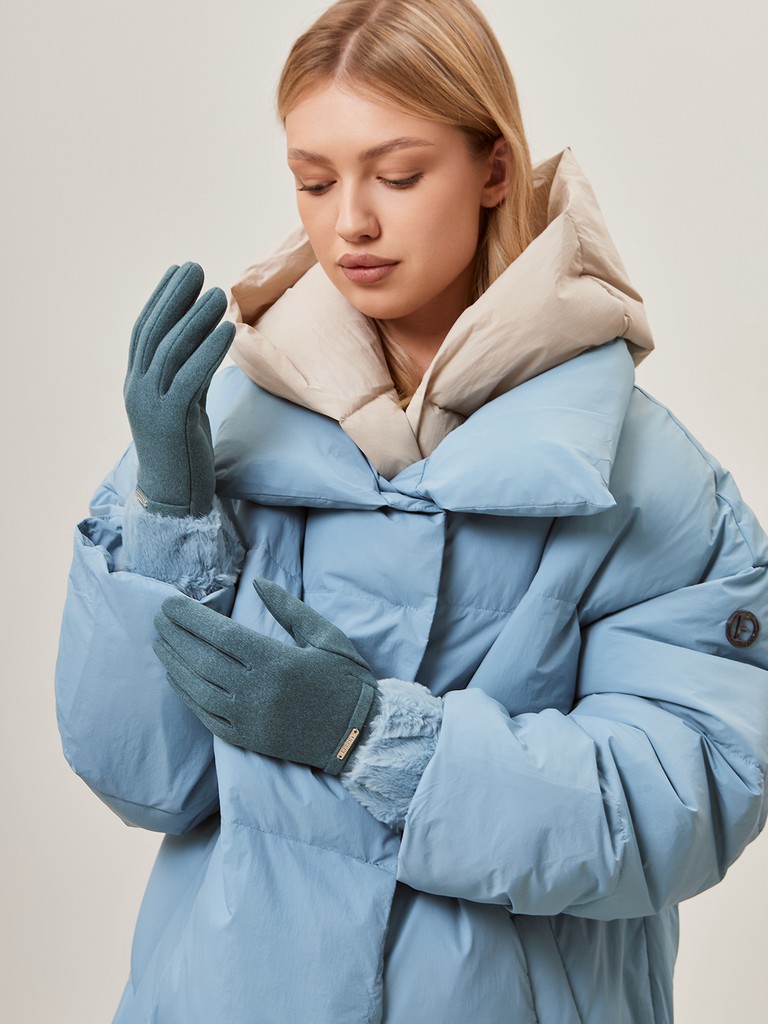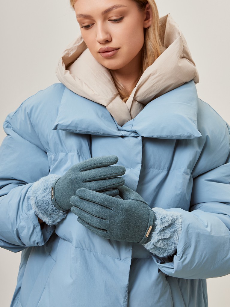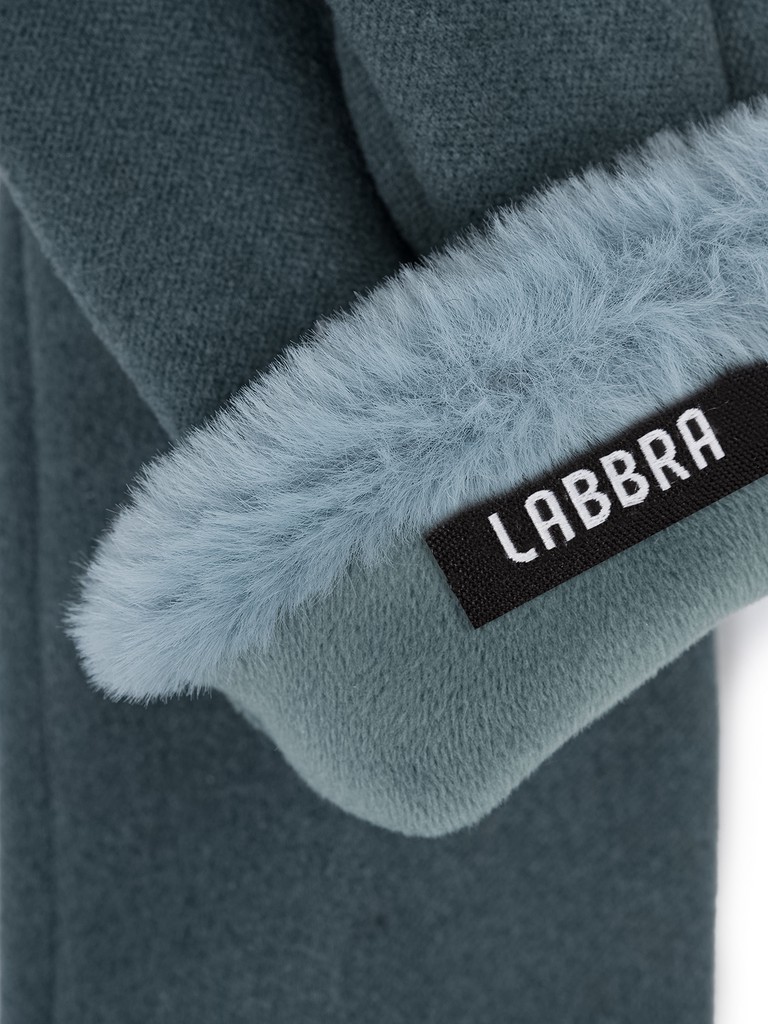 Перчатки женские торговой марки LABBRA в трендовом цвете сезона. Выполнены из трикотажа и дополнены мягким флисовым подкладом. Манжеты декорированы эффектной отделкой из меха. Модель со средней длиной пальцев и длиной манжеты от нижней точки большого пальца до края перчаток - 2 см.