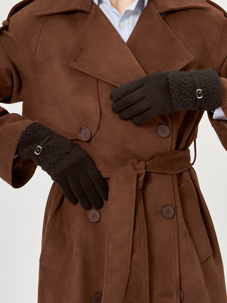 Перчатки женские торговой марки LABBRA в трендовом цвете сезона. Выполнены из трикотажа и дополнены мягким флисовым подкладом. Манжеты декорированы эффектной отделкой из меха и украшены тонким ремешком с металлической пряжкой. Модель со средней длиной пальцев и длиной манжеты от нижней точки большого пальца до края перчаток - 2 см.