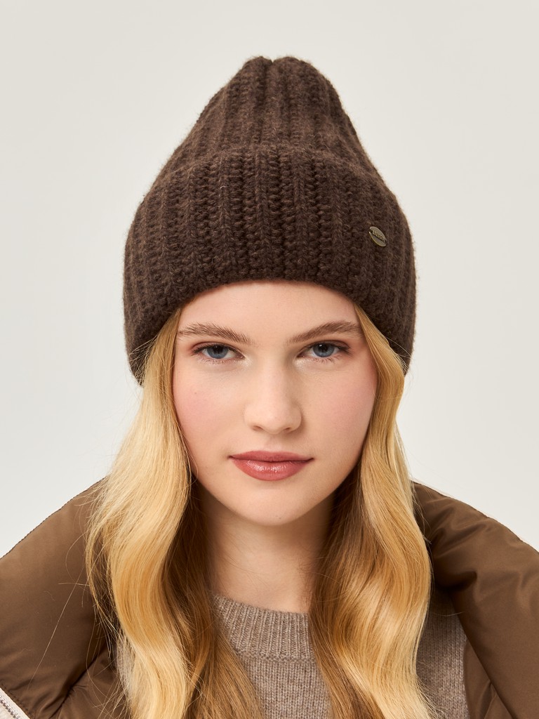 Шапка жен. пух енот+шерсть+виск LB-N88067 d.brown