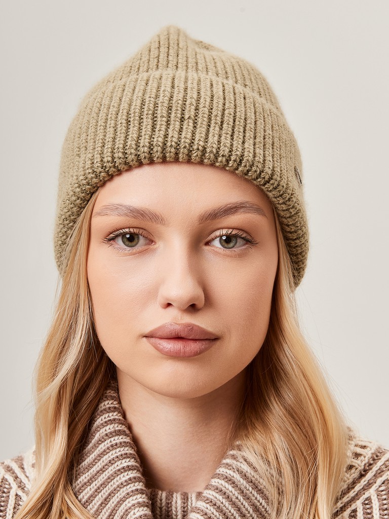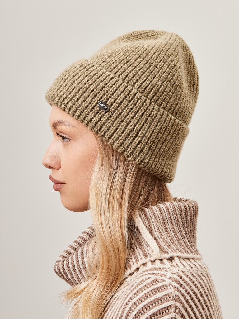 Шапка жен. пух енот+шерсть+виск LB-N88070 olive