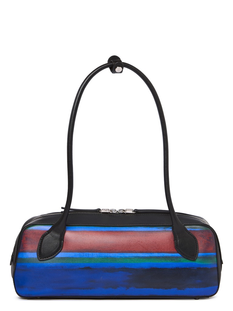 Женская сумка торговой марки Eleganzza из натуральной кожи с авторским принтом, вдохновленным творчеством художника Марка Ротко. Модель застегивается на молнию. Внутри одно отделение с карманом на молнии и открытым карманом. Высота ручек - 29 см. Модель имеет ножки на дне. Не вмещает формат А4.