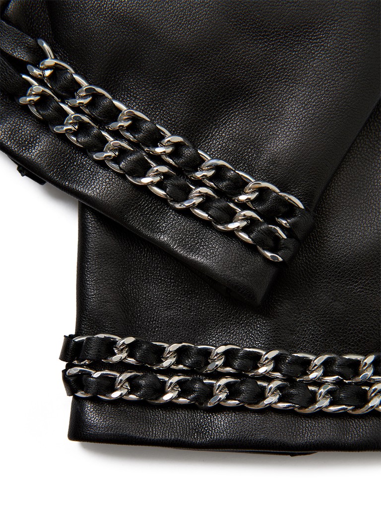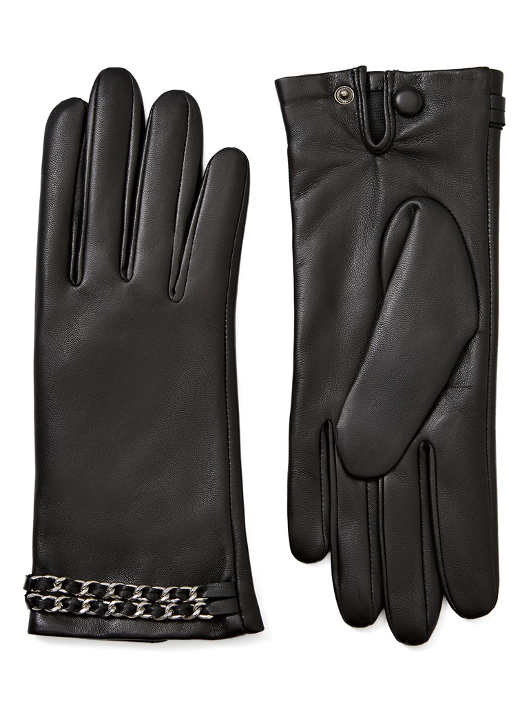 Перчатки женские торговой марки LABBRA из высококачественной кожи ягненка на подкладе из нежного шелка. Изделие деликатно дополнено декоративной отделкой, напоминающей браслет с вплетенным в звенья кожаным шнурком. Модель со средней длиной пальцев и длиной манжеты от нижней точки большого пальца до края перчаток - 6 см.
