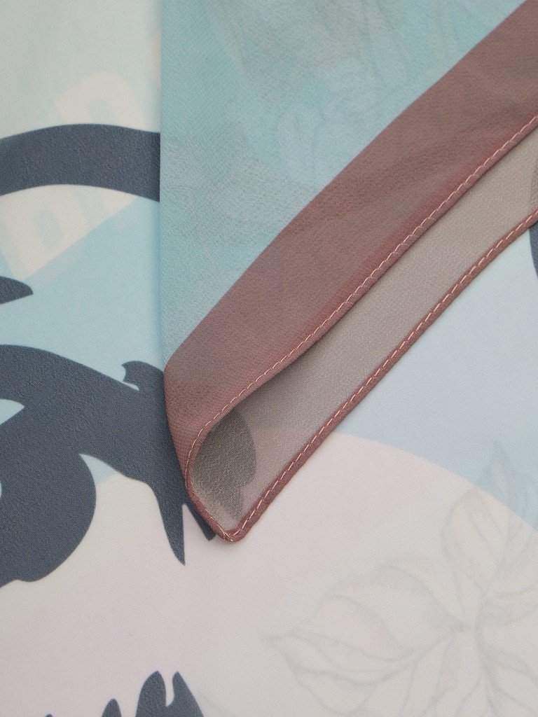 Женский платок торговой марки Labbra, выполненный из нежного шелка с добавлением вискозы. Дополнен авторским принтом, собравшим в себе графичный коллаж с фирменным логотипом и символику бренда - собачку. Края изделия обработаны машинной подгибкой.