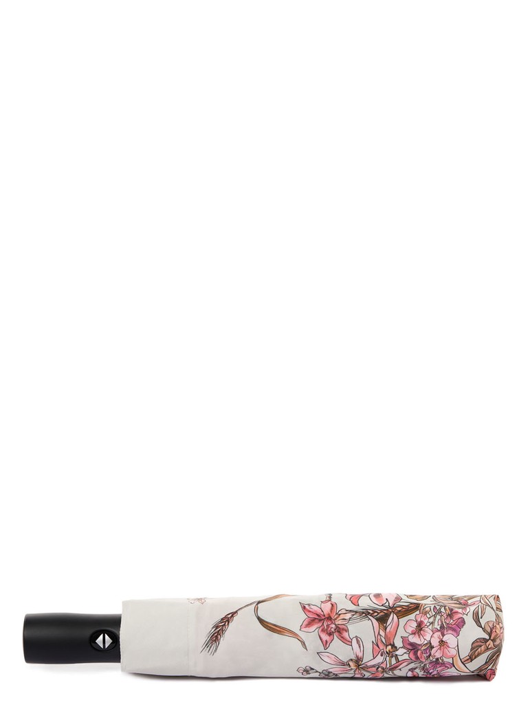 Женский зонт-автомат торговой марки LABBRA. Изделие дополнено авторским принтом с изображением фирменной символики бренда - собачки, как будто гуляющей в саду среди флоральных мотивов. В пару к зонту предлагается стильный платок в том же дизайне.