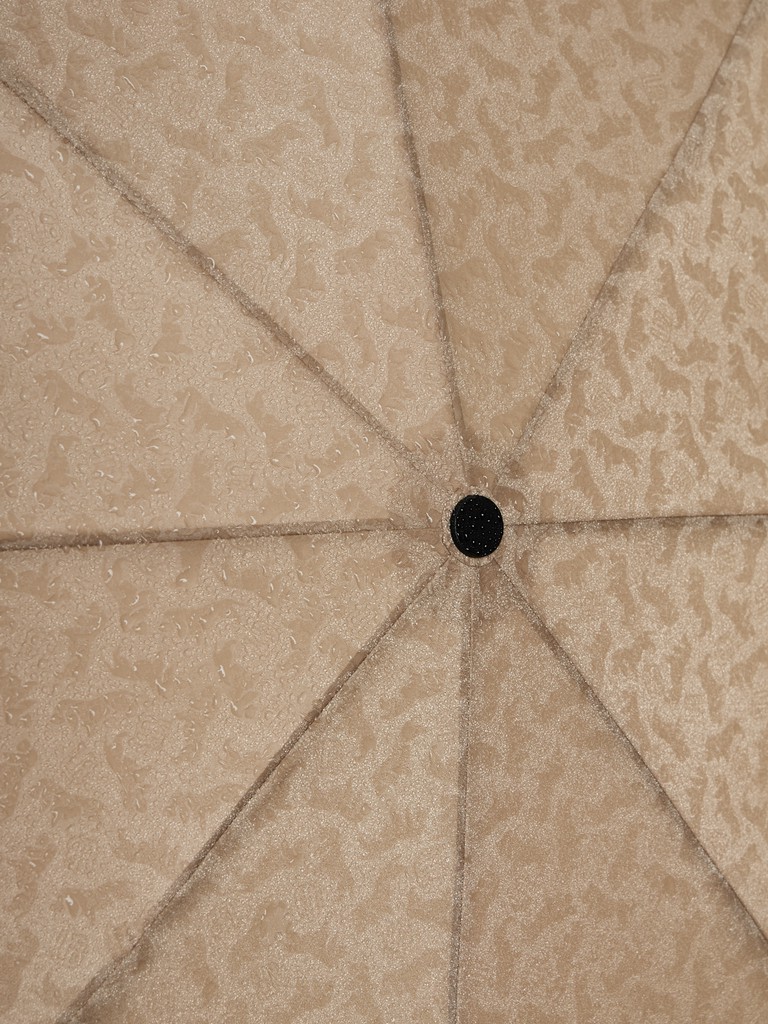 Женский зонт-автомат торговой марки LABBRA. Ткань купола таит в себе удивительный секрет - при намокании на поверхности изделия проявляется эксклюзивный авторский принт с символикой и талисманом бренда - собачкой. После высыхания рисунок исчезает.