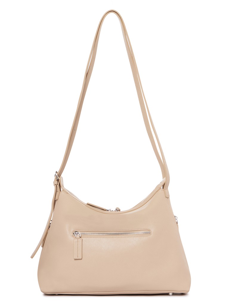 Женская сумка торговой марки Eleganzza из натуральной кожи. Модель застегивается на молнию. Внутри одно отделение с карманом на молнии и открытым карманом. По бокам имеются карманы на молниях. На задней стенке – карман на молнии. Высота ручек – 45 см. Модель имеет ножки на дне. Вмещает формат А4.