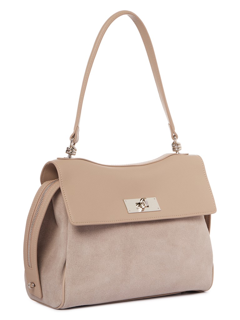 Женская сумка торговой марки Eleganzza из натуральной кожи. Модель закрывается клапаном и застегивается на поворотный замок. Внутри два отделения с открытым карманом и карманом на молнии. На задней стенке – карман на молнии. Высота ручек – 22 см. Длина регулируемого съемного плечевого ремня из натуральной кожи – 42 см, ширина – 1,8 см. Модель имеет ножки на дне. Не вмещает формат А4.