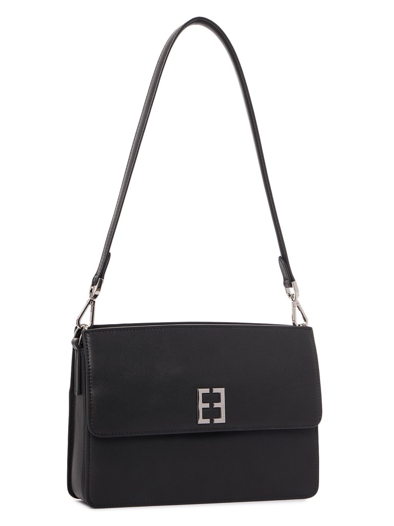 Женская сумка торговой марки Eleganzza из натуральной кожи. Модель закрывается клапаном и фиксируется металлическим элементом. Внутри одно отделение, в котором имеются три открытых кармана. Высота ручек – 32 см. Длина наплечного ремня из натуральной кожи – 108 см, ширина – 1,5 см. Модель не имеет ножки на дне. Не вмещает формат А4.