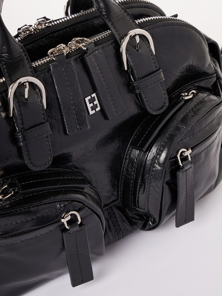 Высота ручек — 10 см. В комплекте — регулируемый съёмный плечевой ремень: максимальная длина — 83 см, ширина — 2,5 см. Модель не имеет ножек на дне. Формат А4 не вмещает.