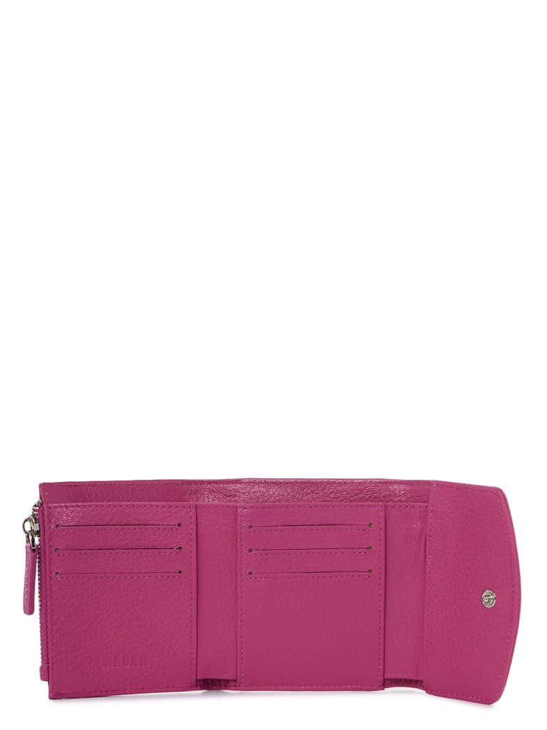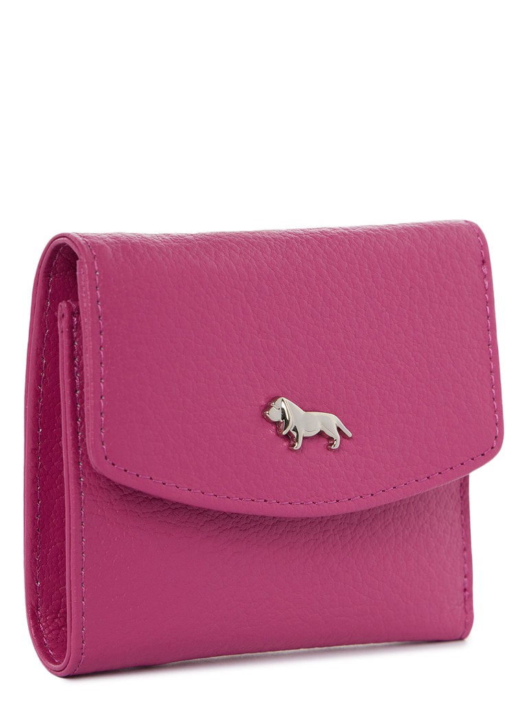 Женский кошелёк торговой марки LABBRA из натуральной кожи. В кошельке есть одно складывающееся отделения для купюр и 9 различных карманов для кредитных и дисконтных карт, эти отделения закрываются клапаном с кнопкой. Отделение для мелочи расположено под клапаном и закрывается на молнию. Дополнительное отделение расположено снаружи и закрывается на молнию.