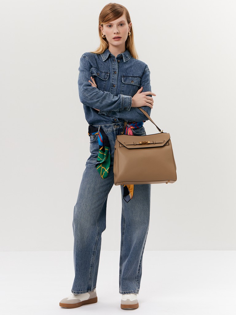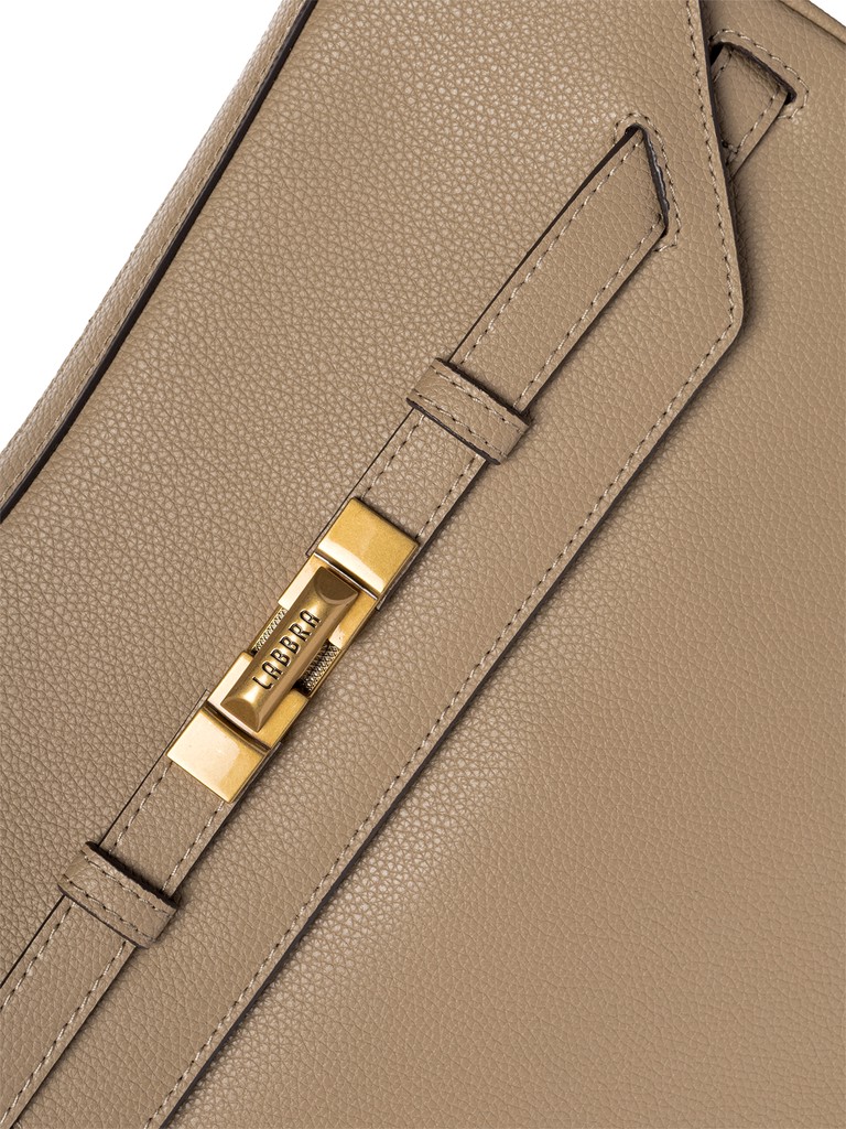 Женская сумка торговой марки Labbra из натуральной кожи. Модель закрывается клапаном, который застёгивается на кнопки-магниты. Содержит внутри два отдела, разделённые между собой карманом-перегородкой на молнии. В одном из отделов имеется карман на молнии, в другом открытый карман на узком клапане с магнитной кнопкой. На задней стенке сумки есть дополнительные открытые глубокие карманы. Высота ручки - 19 см. Максимальная длина регулируемого съемного плечевого ремня из натуральной кожи - 95 см, ширина - 1,8 см. Модель имеет ножки на дне. Вмещает формат А4.