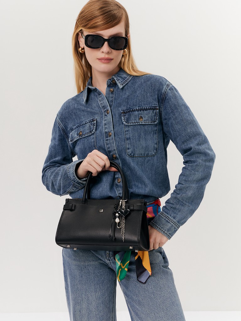 Женская сумка торговой марки Labbra из натуральной кожи. Изделие дополнено съемной подвеской на фирменном кольце-карабине - сердцем из прочного черного пластика в сочетании со шнурком, цепочкой и декоративной булавкой. Можно использовать как брелок для ключей или стильный аксессуар. Модель застегивается на молнию. Внутри одно отделение с карманом на молнии и двумя открытыми карманами. На передней стенке сумки расположен карман на магните, на задней - карман на молнии. Высота ручек - 12 см. Максимальная длина регулируемого съемного плечевого ремня из натуральной кожи - 102 см, ширина - 1,5 см. Модель имеет ножки на дне. Не вмещает формат А4.