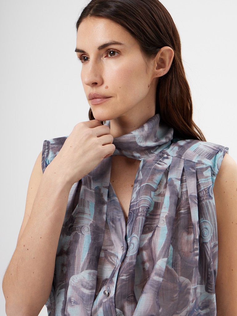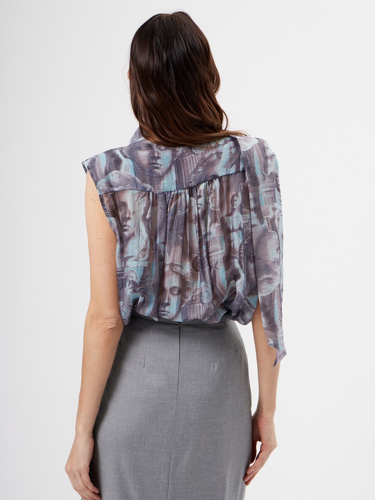 Женская блузка свободного кроя из нежной смесовой ткани с акцентым воротником и спущенной линиией плеча. Модель иммет множество складок по спинке- что создает неповторимый силуэт. Лаконичная модель без лишнего декора. Невероятный цвет блузки впишется в любой гардероб.