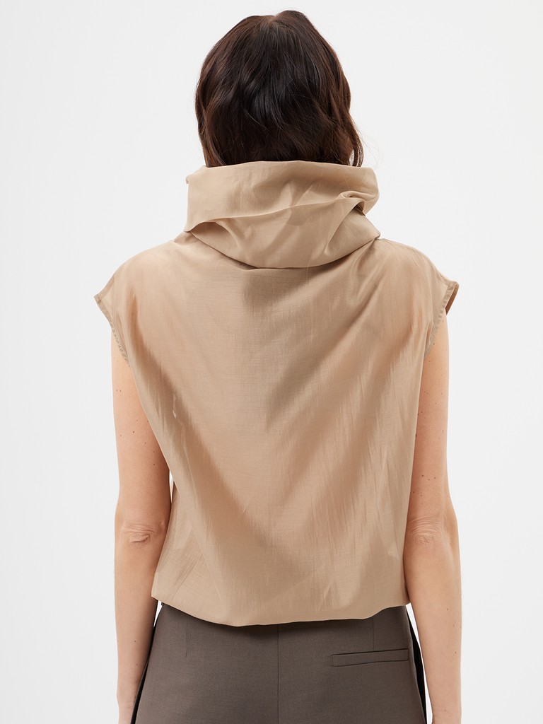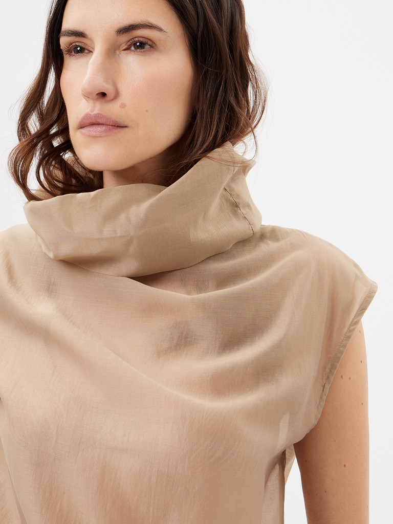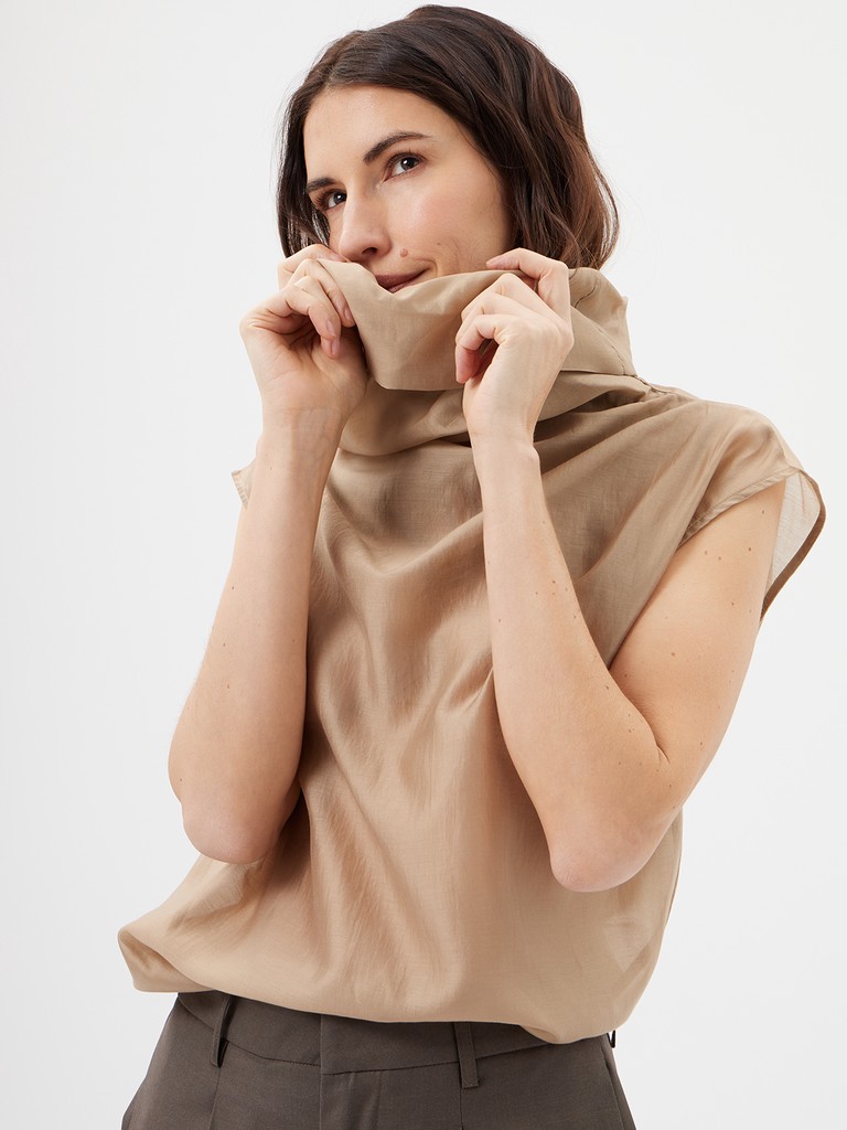Женская блузка свободного кроя из нежной смесовой ткани с объемным воротником и спущенной линиией плеча. Лаконичная модель без лишнего декора- где есь акцент строится вокруг воротника. Невероятный цвет блузки впишется в любой гардероб.