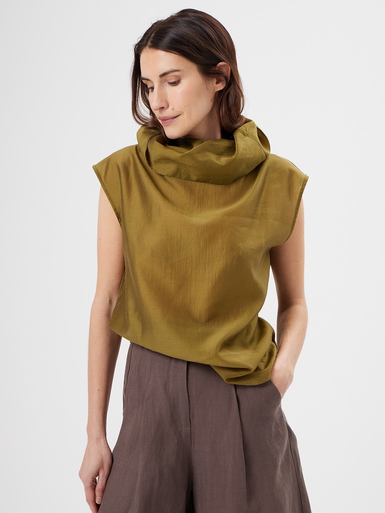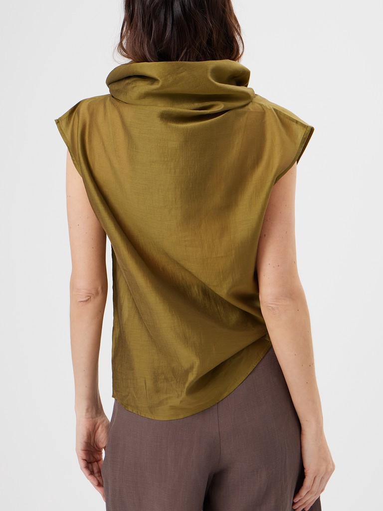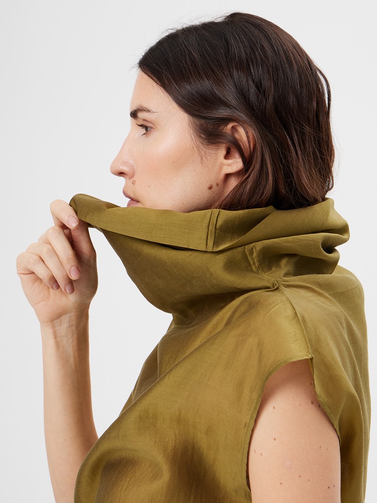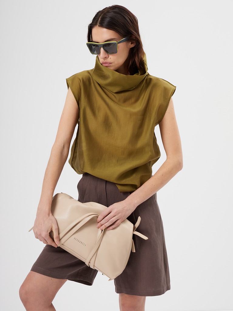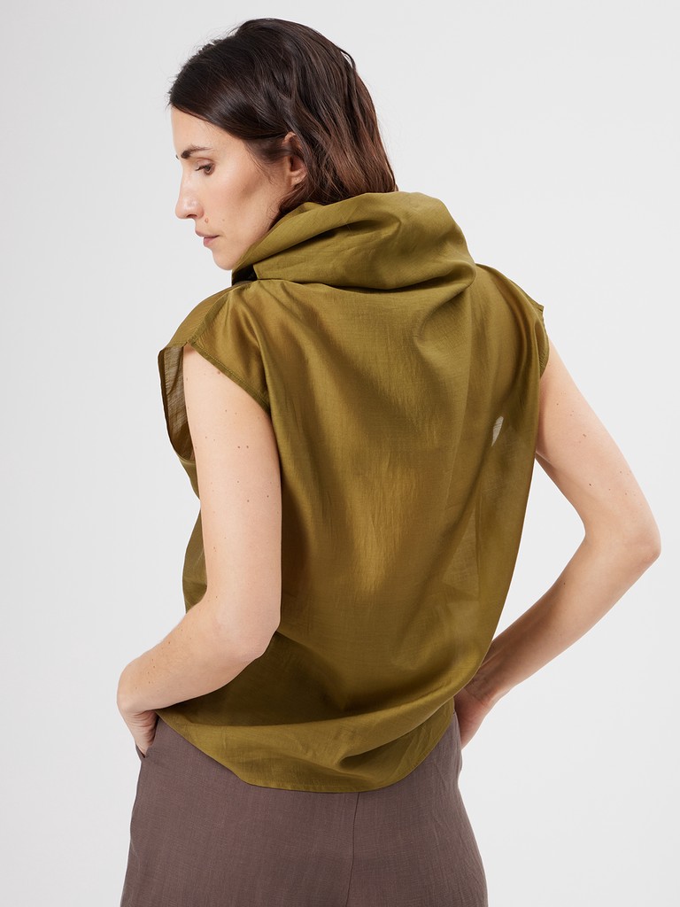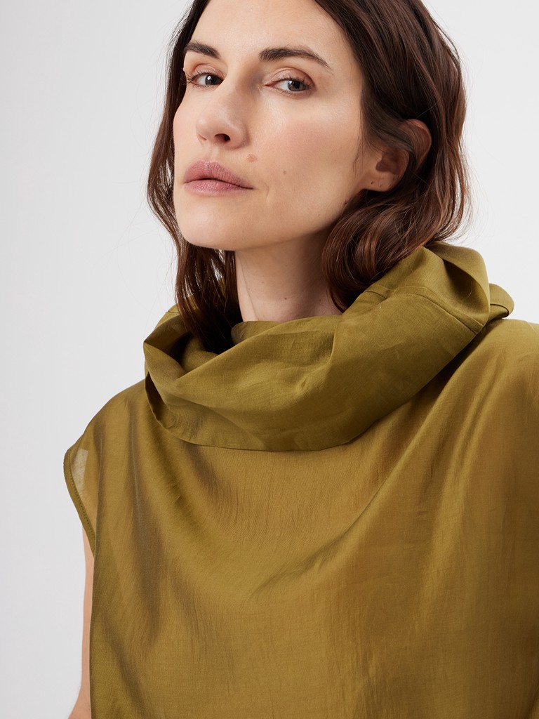 Женская блузка свободного кроя из нежной смесовой ткани с объемным воротником и спущенной линиией плеча. Лаконичная модель без лишнего декора- где есь акцент строится вокруг воротника. Невероятный цвет блузки впишется в любой гардероб.