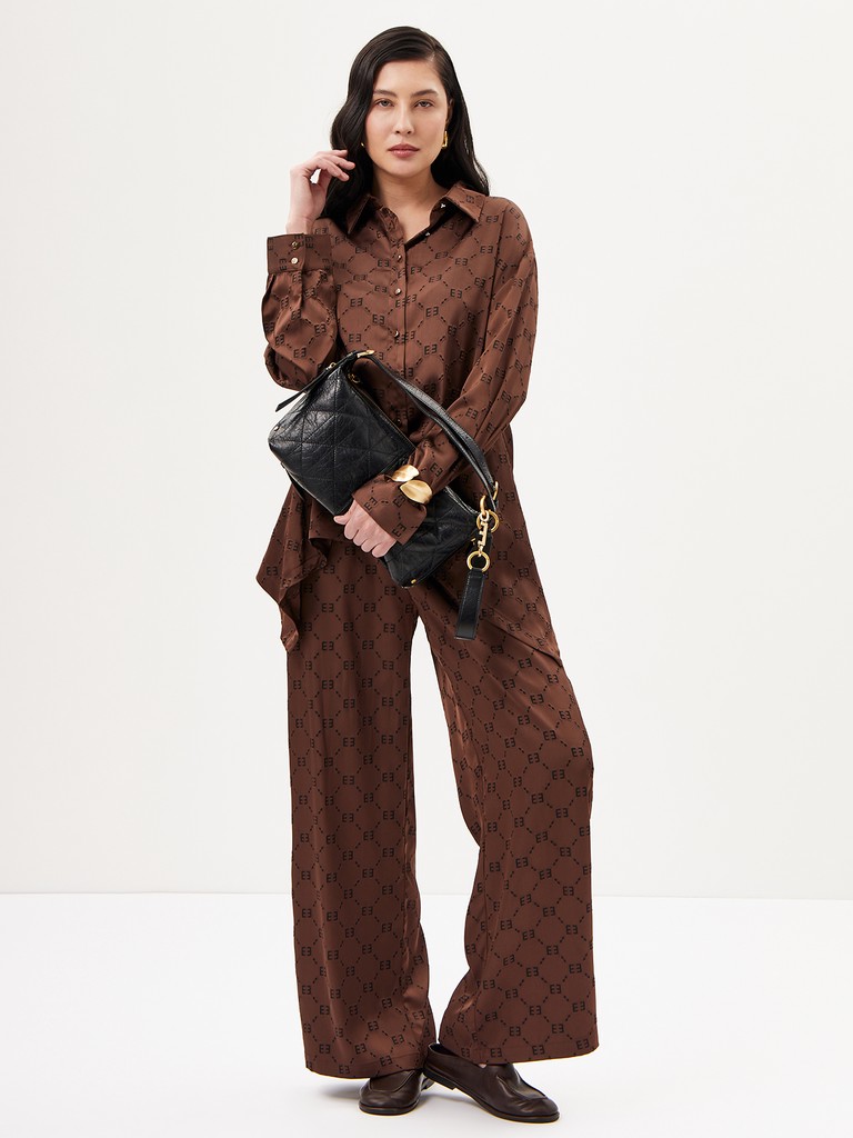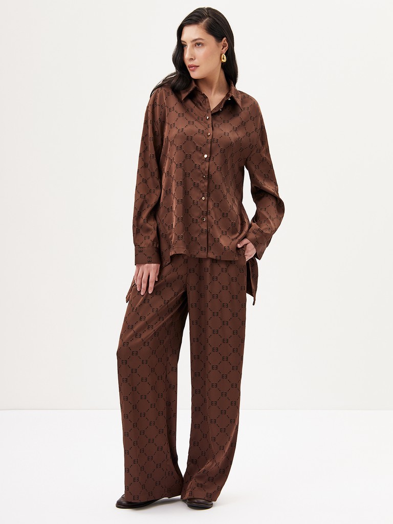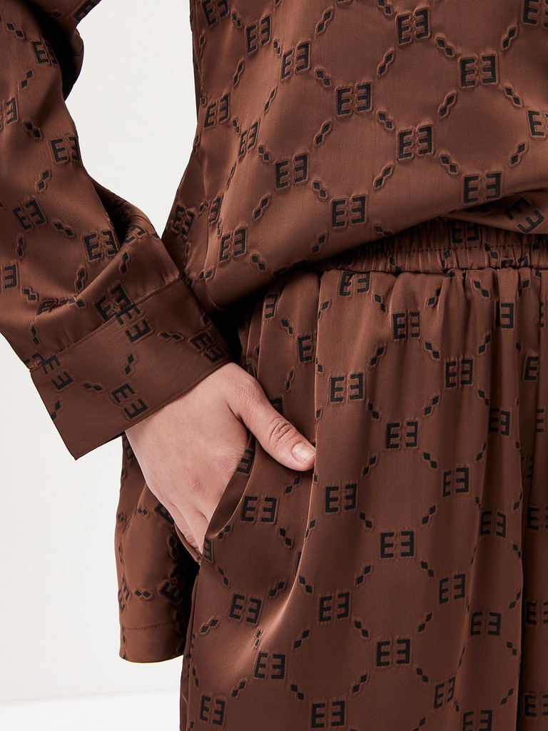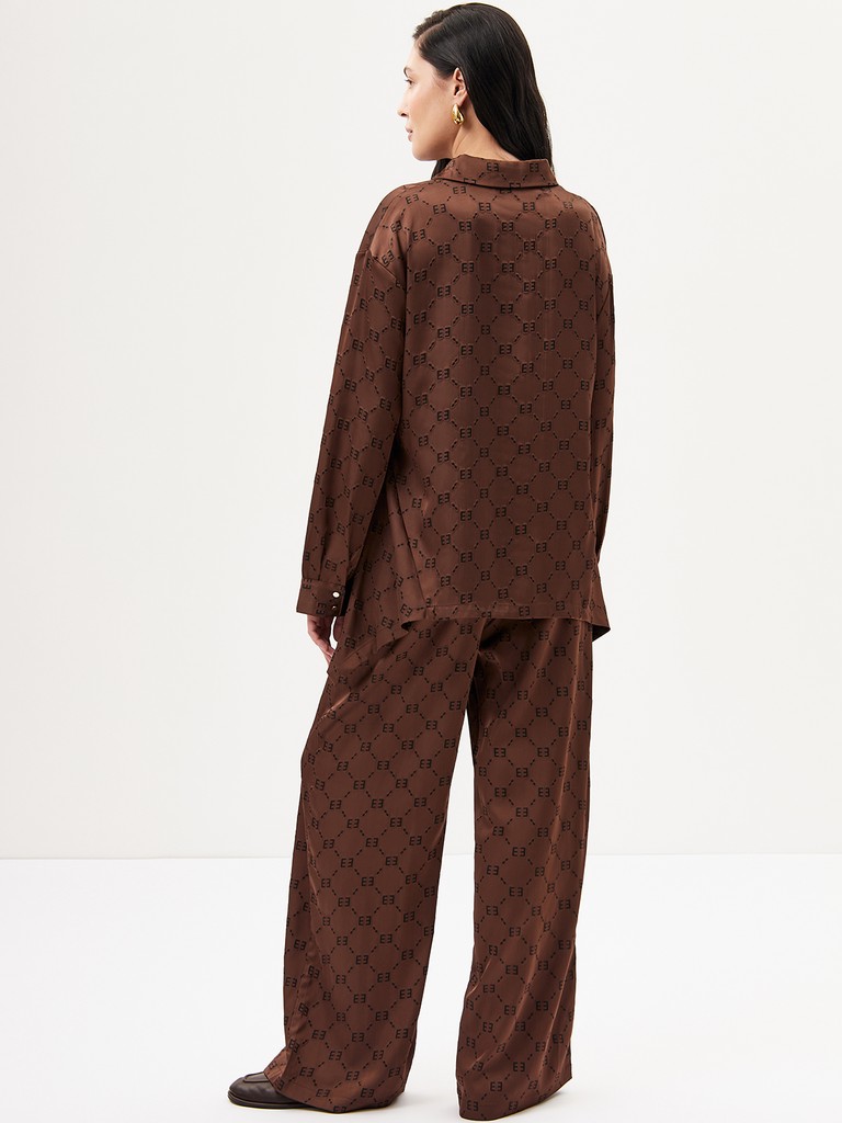 Лаконичные брюки свободного кроя с удобной резинкой на талии. С фирменным лого бренда. Украшена принтом с логотипом бренда. Выполнена из мягкого полиэстера, который приятен к телу и обеспечивает комфорт в течение дня. Благодаря свободному крою и классической длине модель дополнит вечерний или повседневный костюм.