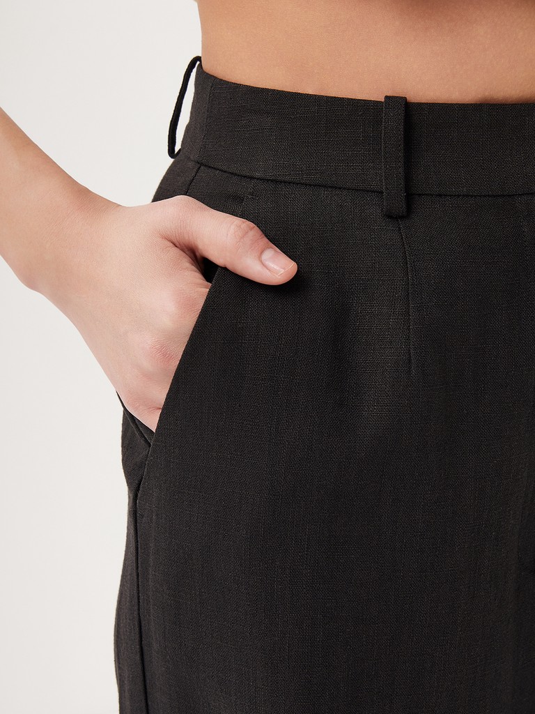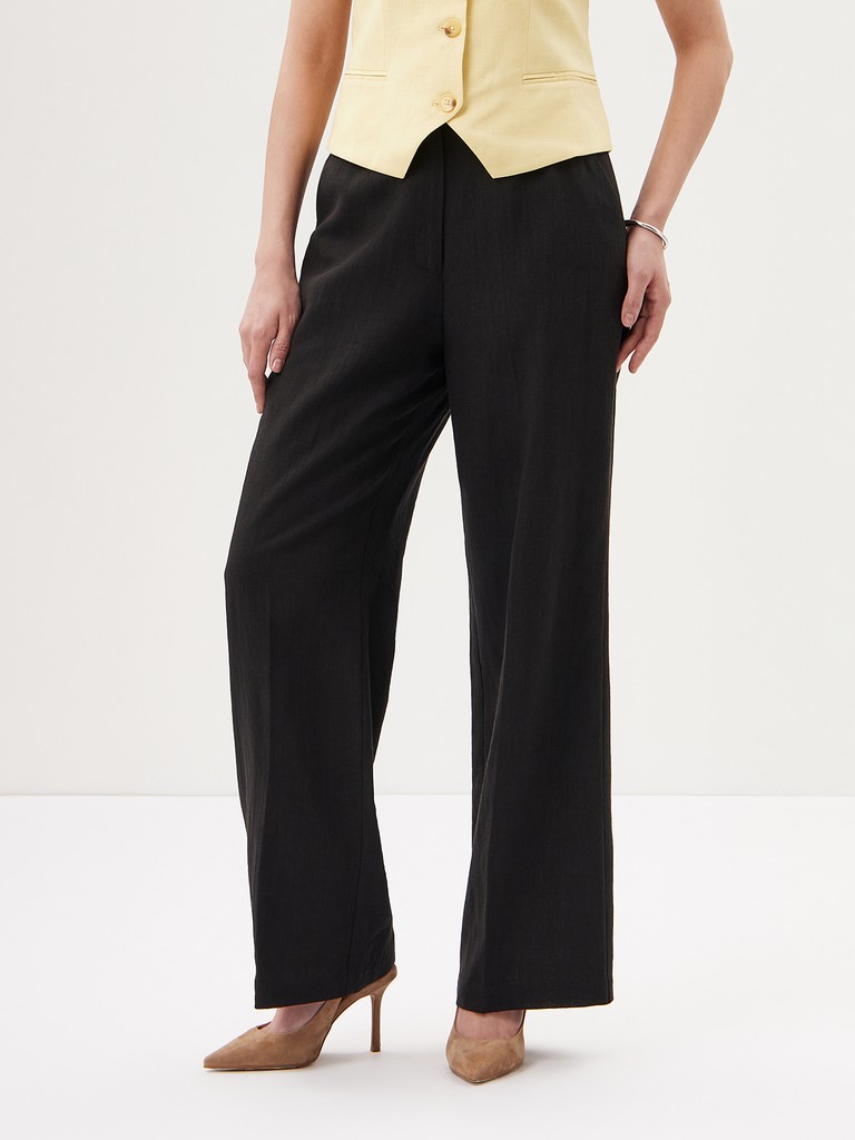 Классические женские брюки прямого силуэта с удобным поясом. Выполнены из премиальных материалов. Застегиваются на молнию и крючок. Простой и лаконичный дизайн легко сочетается с другими элементами гардероба, добавляя элегантности в любой стиль.
