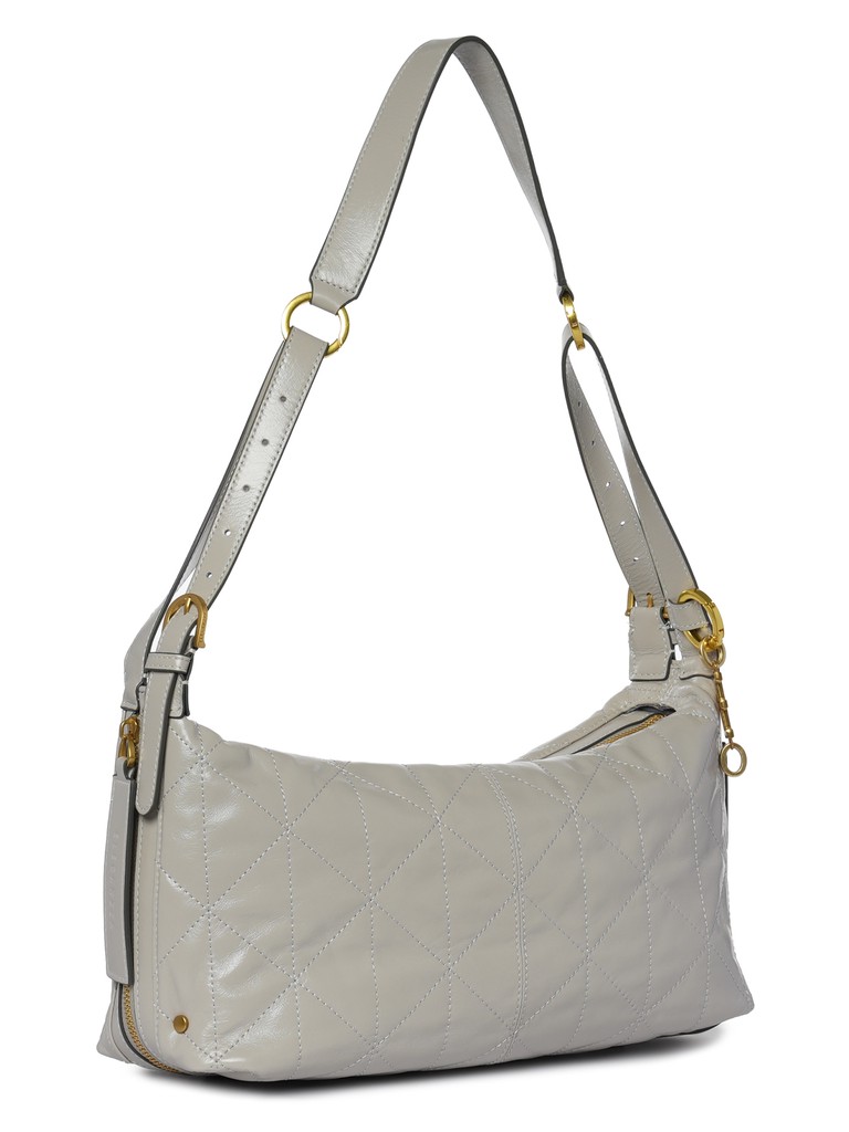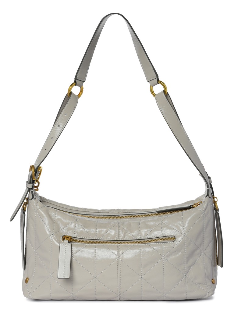 Главная особенность — ручка‑трансформер: плечевой ремень можно отстегнуть и перестегнуть, превращая его в две короткие ручки. Благодаря этому сумку удобно носить на плече/через плечо или в руке. На задней стенке предусмотрен карман на молнии.