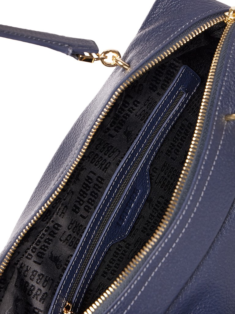 Женская сумка торговой марки Labbra из натуральной кожи. Модель закрывается на двухзамковую молнию. Внутри одно отделение с карманом на молнии и двумя открытыми карманами. На задней стенке - карман на молнии. Модель имеет ножки на дне. Не вмещает формат А4.