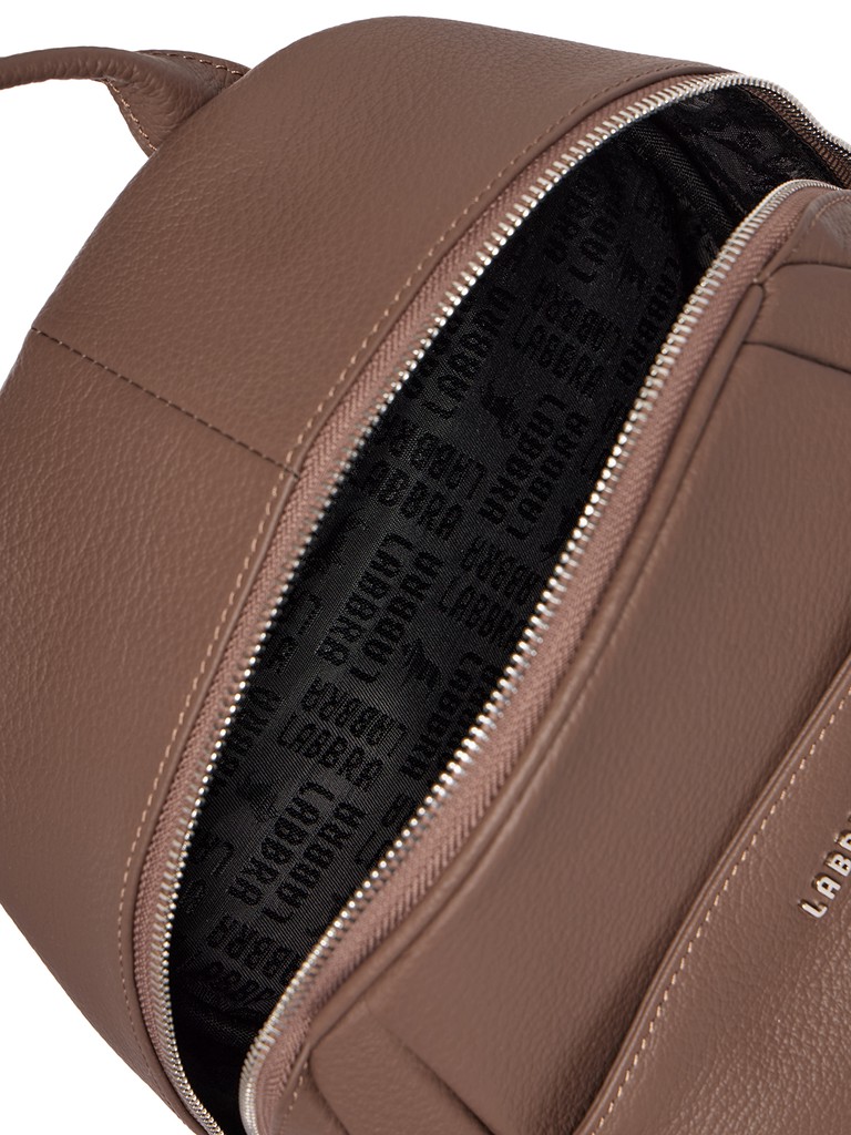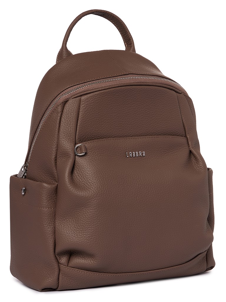 Женский рюкзак торговой марки Labbra из натуральной кожи. Модель застегивается на молнию. Внутри одно отделение с двумя карманами на молнии и двумя открытыми карманами. На передней стенке — карман на магнитной кнопке, на задней - карман на молнии. По бокам - открытые карманы. Модель не имеет ножек на дне. Не вмещает формат А4.