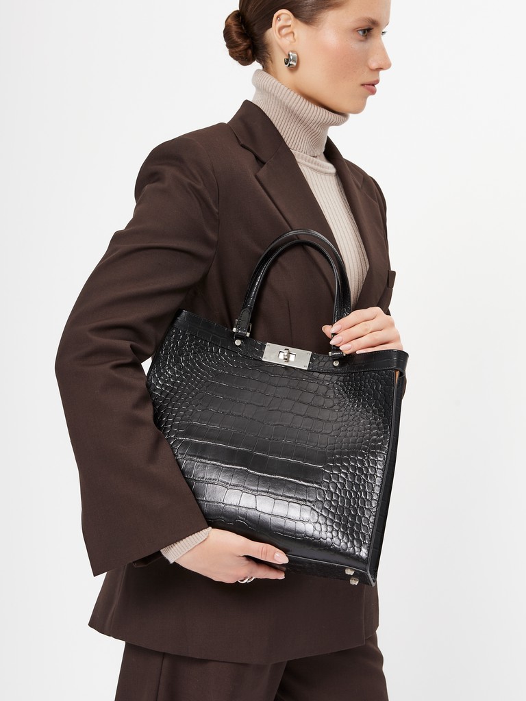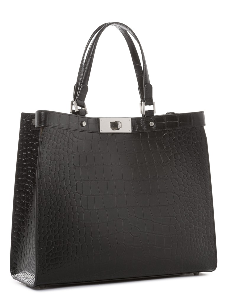 Женская сумка торговой марки Eleganzza из натуральной кожи с тиснением под крокодила. Модель трендовой лаконичной формы, застегивается на поворотный замок. Одно отделение дублировано микрофиброй под кожу, что повышает износостойкость изделия. Внутренняя организация - карман на молнии и открытый карман. Высота ручек - 16 см. Максимальная длина регулируемого съемного плечевого ремня из натуральной кожи - 76 см, ширина - 1,5 см. Модель имеет ножки на дне. Вмещает формат А4.