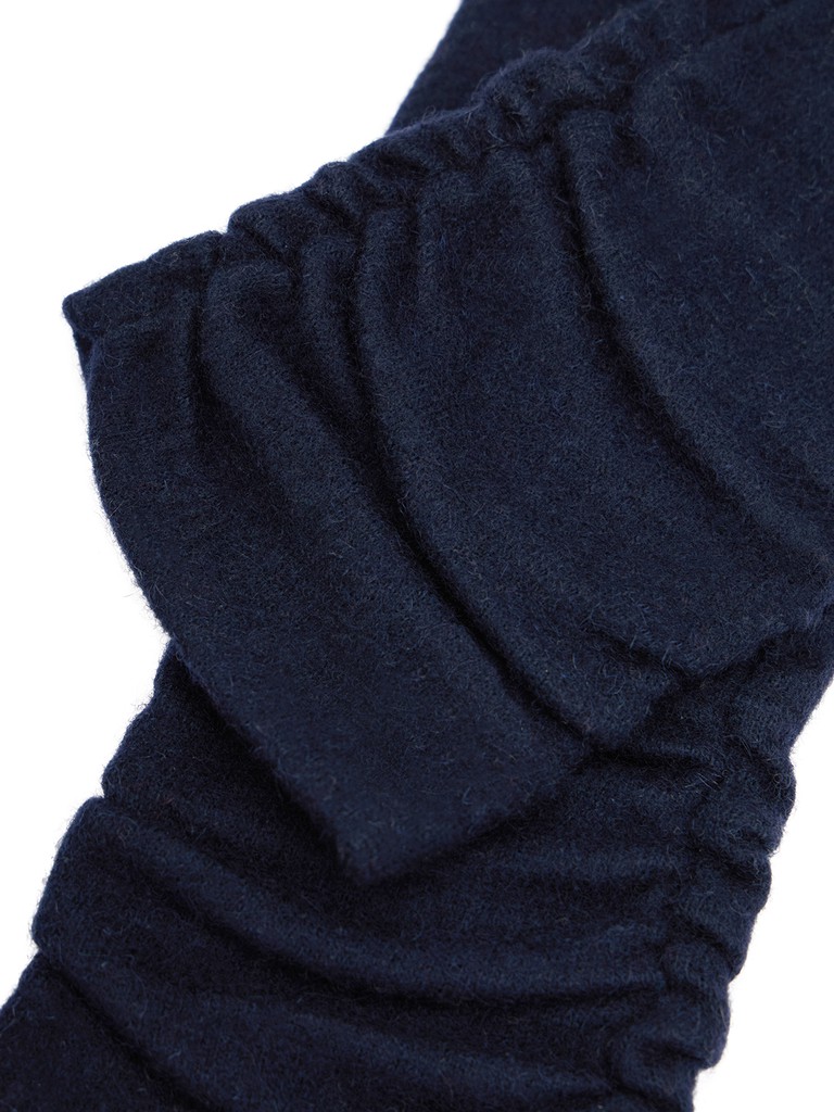 Перчатки торговой марки LABBRA производства Китай выполнены из трикотажной шерсти. Состав трикотажа: 80% шерсть, 20% нейлон. Отделка - декоративная сборка по всей длине манжеты. Длина манжеты от нижней точки большого пальца до края перчатки - 10 см. Длина пальцев - средняя.