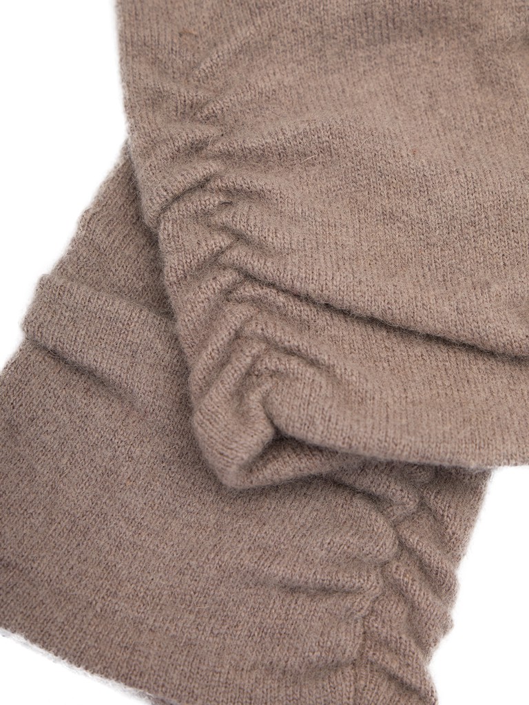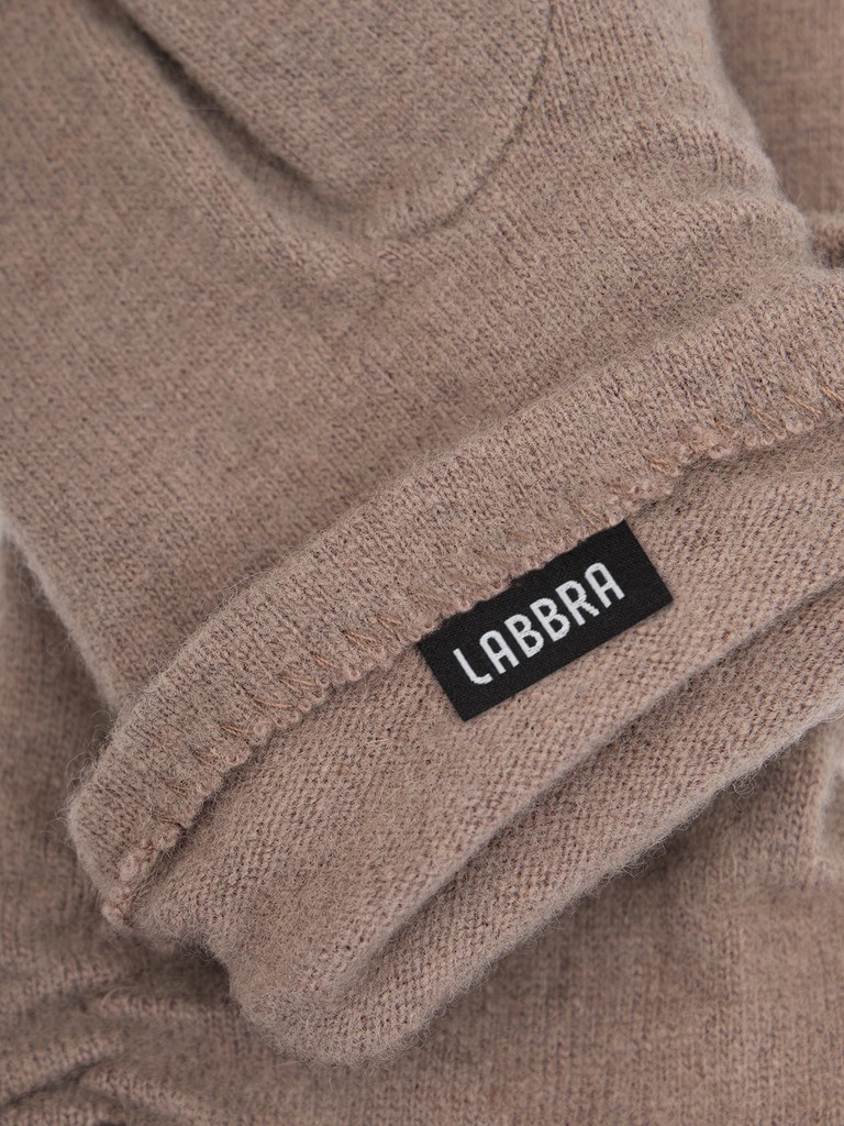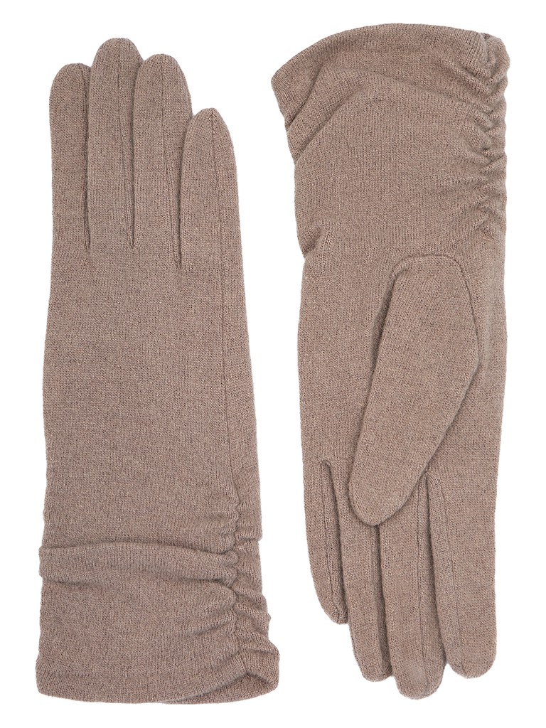 Перчатки торговой марки LABBRA производства Китай выполнены из трикотажной шерсти. Состав трикотажа: 80% шерсть, 20% нейлон. Отделка - декоративная сборка по всей длине манжеты. Длина манжеты от нижней точки большого пальца до края перчатки - 10 см. Длина пальцев - средняя.
