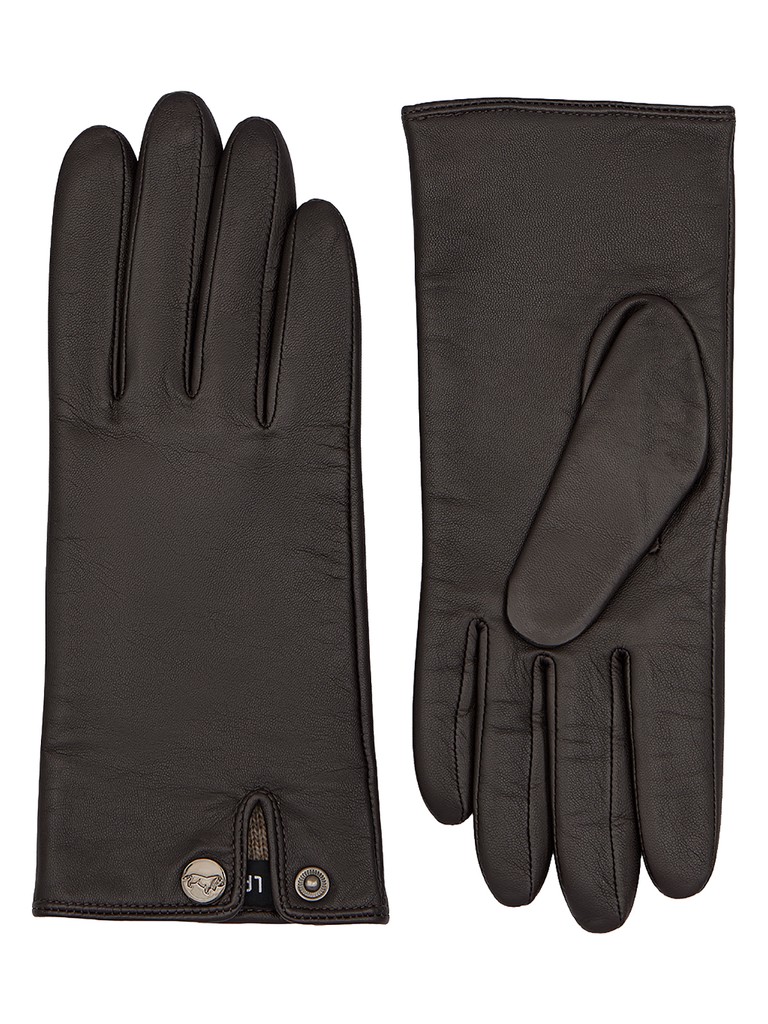 Перчатки женские торговой марки LABBRA из натуральной кожи ягненка. Производство Китай. Подкладка: 70% шерсть + 30% акрил. Отделка - на лицевой части перчатки разрез с фирменной кнопкой. Длина манжеты от нижней точки большого пальца до края перчаток - 6 см. Длина пальцев - средняя.