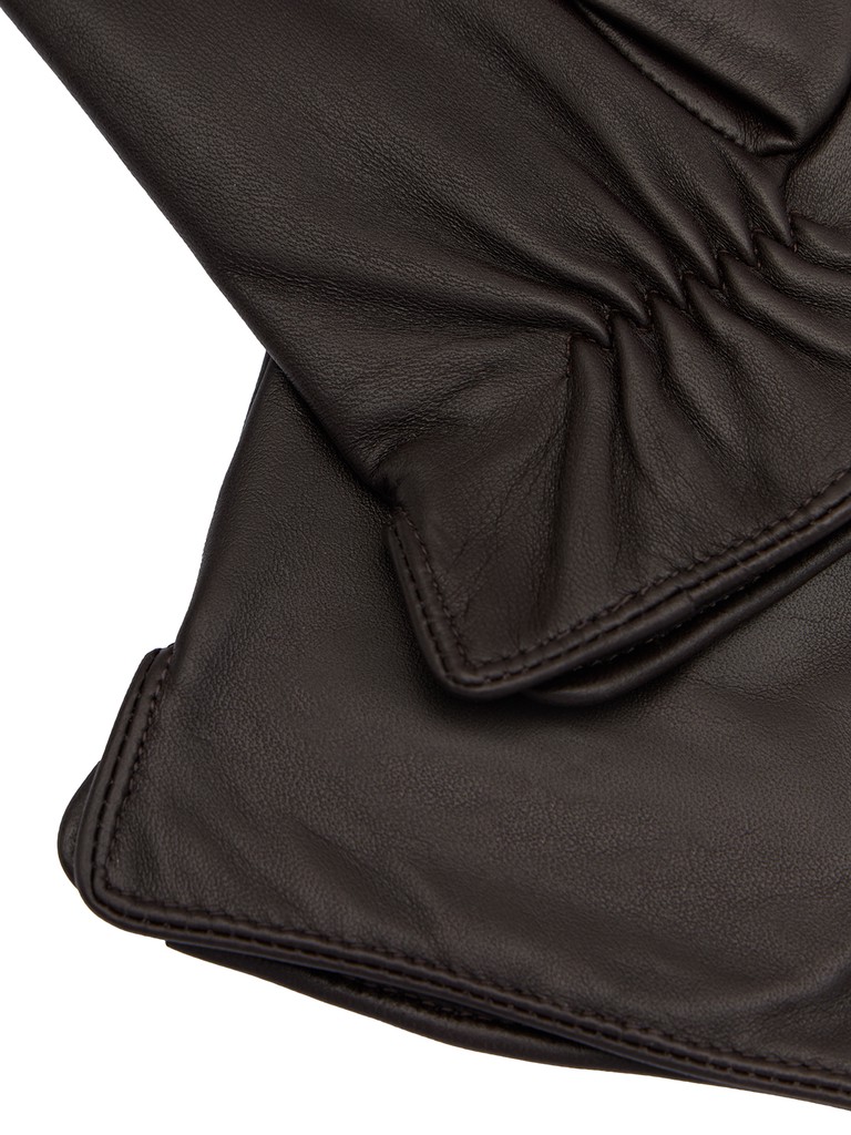 Перчатки торговой марки LABBRA производства Китай изготовлены из натуральной кожи ягненка чёрного цвета. Подкладка: 70%шерсть, 30% акрил. Боковой разрез на манжете. Длина манжеты от нижней точки большого пальца до края перчаток составляет 5 см. Длина пальцев - средняя.