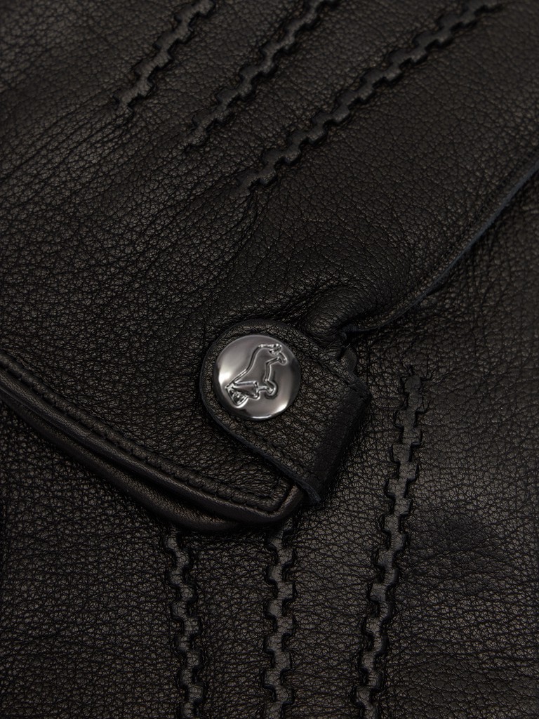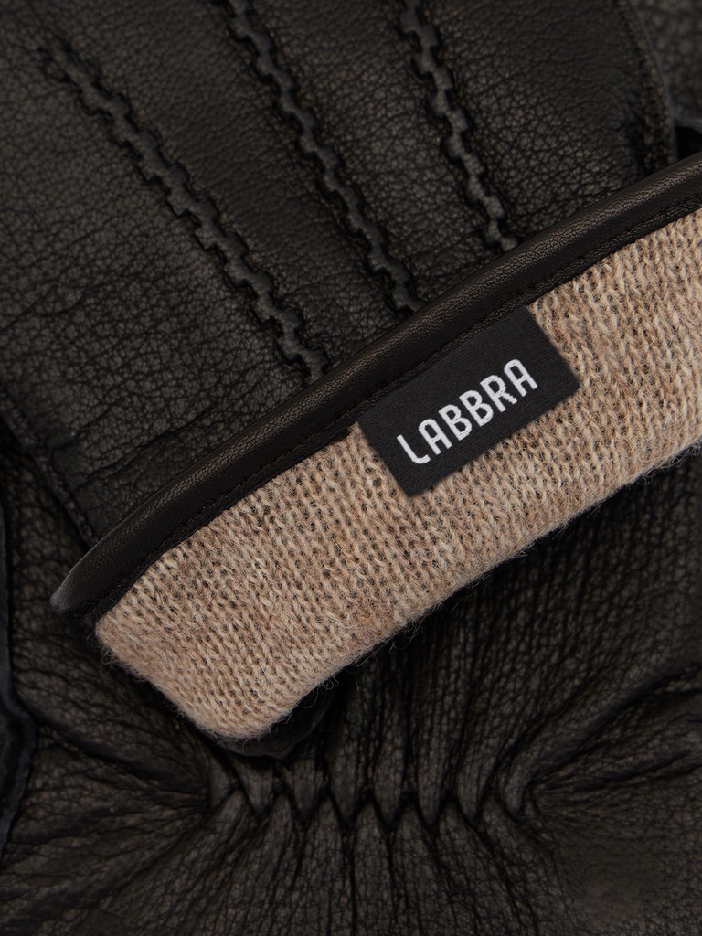 Перчатки торговой марки LABBRA производства Китай изготовлены из натуральной кожи ягненка с тиснением под оленя. Подкладка: 70%шерсть, 30% акрил. Боковой разрез на манжете и фурнитура с символикой бренда. Длина манжеты от нижней точки большого пальца до края перчаток составляет 5 см. Длина пальцев - средняя.