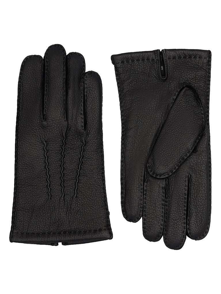 Перчатки мужские торговой марки ELEGANZZA производства Китай, изготовлены из натуральной кожи оленя. Подкладка: 100% шерсть. Отделка - декоративные швы "3 луча" на лицевой стороне. Длина манжеты от нижней точки большого пальца до края перчаток составляет - 5 см. Длина пальцев: средняя.