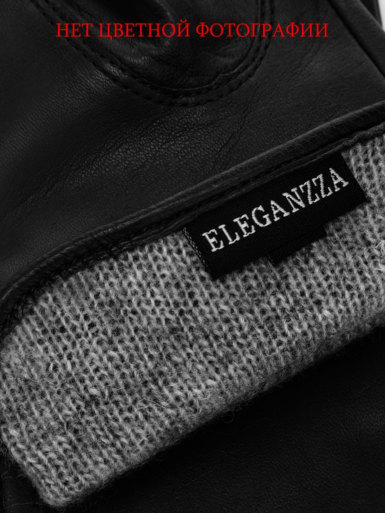 Перчатки торговой марки ELEGANZZA выполнены из натуральной кожи ягненка производства Италии. Подкладка 85% шерсть, 15%кашемир. Низ - фигурная манжета, отделка - декоративный машинный шов. Длина манжеты от нижней точки большого пальца до края перчаток - 7 см. Длина пальцев - укороченные.