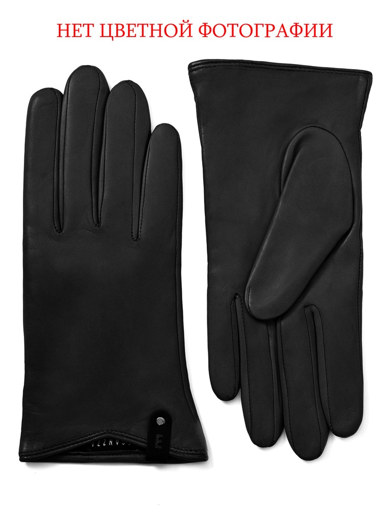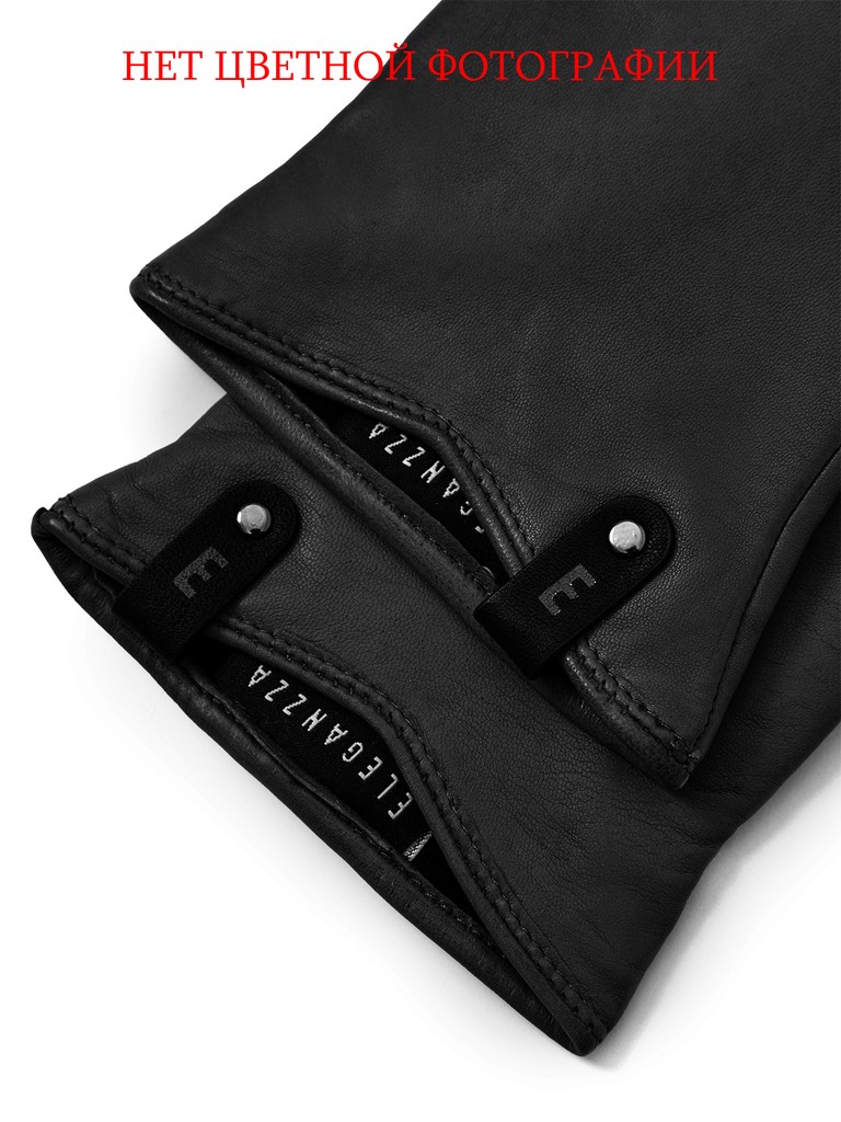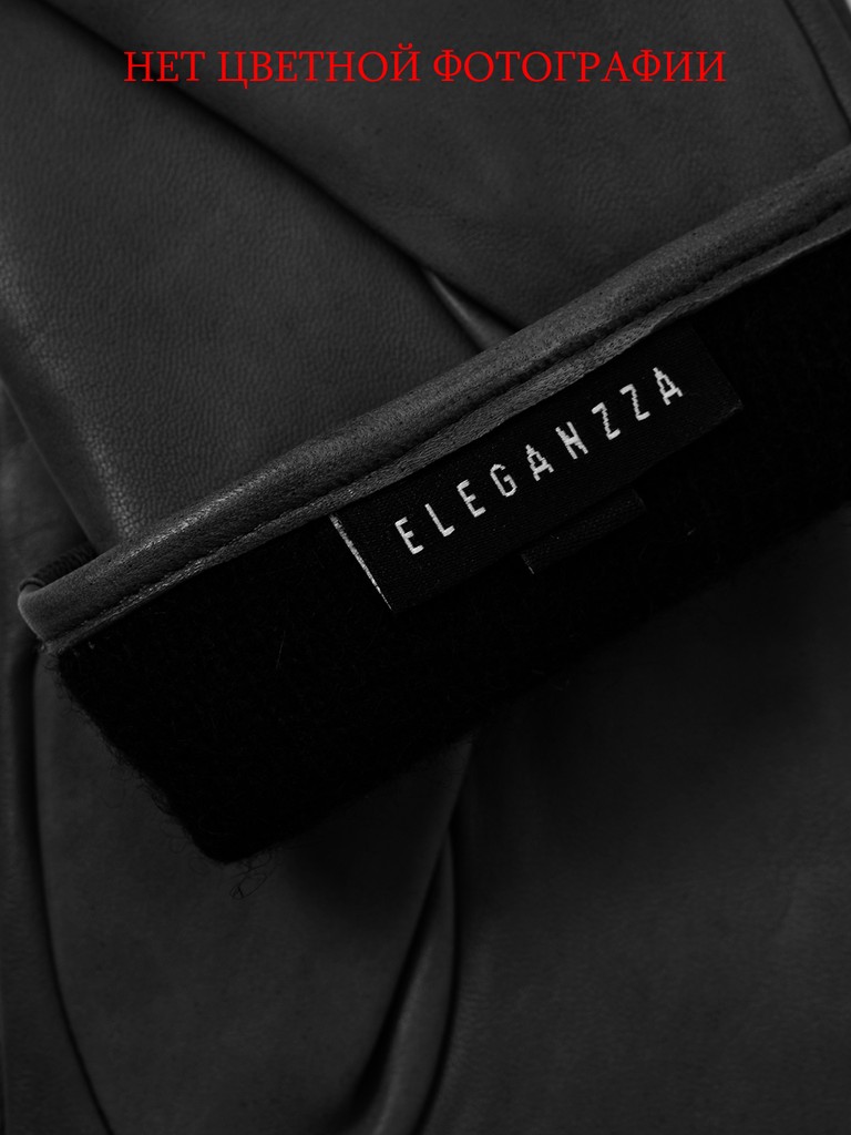 Перчатки женские торговой марки ELEGANZZA из натуральной кожи ягненка. Подкладка черного цвета 85% шерсть, 15% кашемир. Декоративная отделка - кожаная петелька с фирменным штампом из плотной кожи, закрепленная черным матовым хольнитеном. Длина манжеты от нижней точки большого пальца до края перчаток - 3 см. Длина пальцев - средняя.