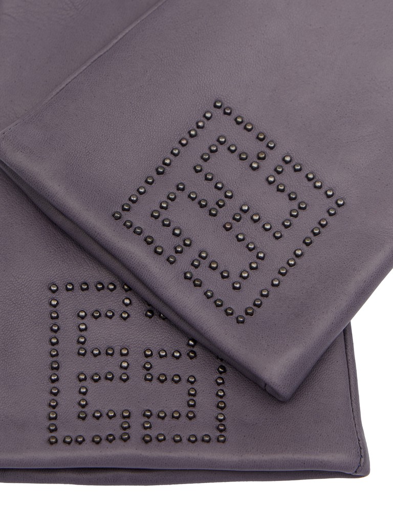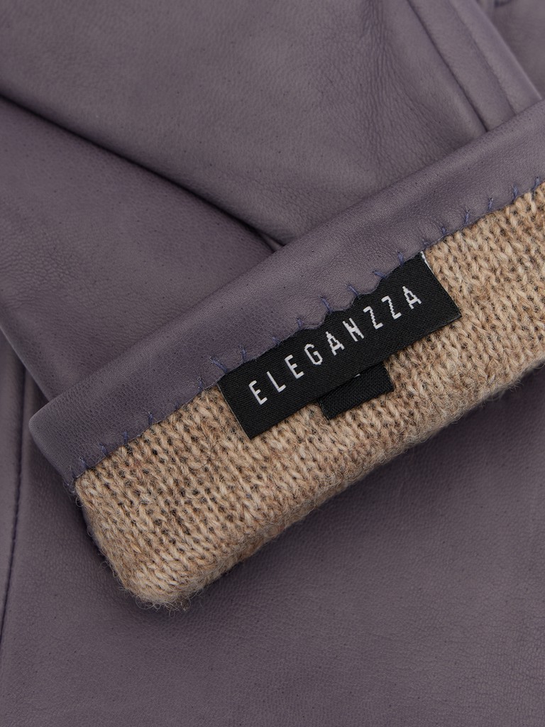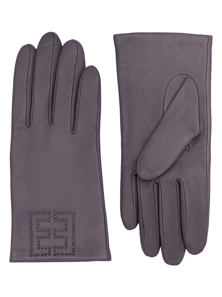 Перчатки женские торговой марки ELEGANZZA из натуральной кожи ягненка. Подкладка черного цвета 85% шерсть, 15% кашемир. Отделка - декор из хольнитенов в форме символики бренда. Длина манжеты от нижней точки большого пальца до края перчаток - 4 см. Длина пальцев - средняя.