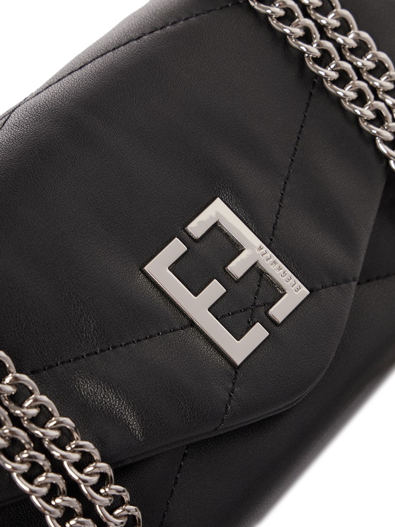 Женская сумка торговой марки Eleganzza из натуральной кожи. Модель закрывается клапаном и фиксируется металлическим элементом. Внутри одно отделение с двумя открытыми карманами. Высота ручек — 55 см. Модель не имеет ножек на дне. Не вмещает формат А4.