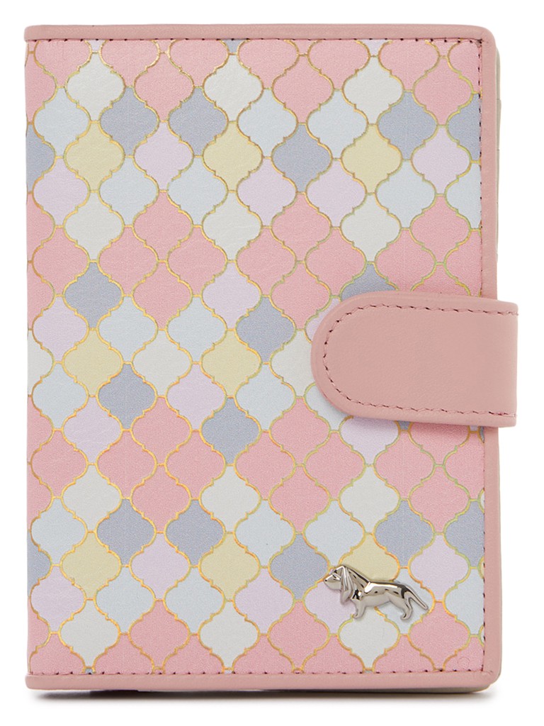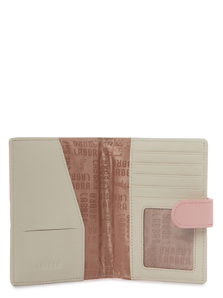 Женская обложка для паспорта марки LABBRA из натуральной кожи. Закрывается на регулируемый по объему заполнения цупфер с кнопкой. Внутри имеются шесть карманов для карточек.