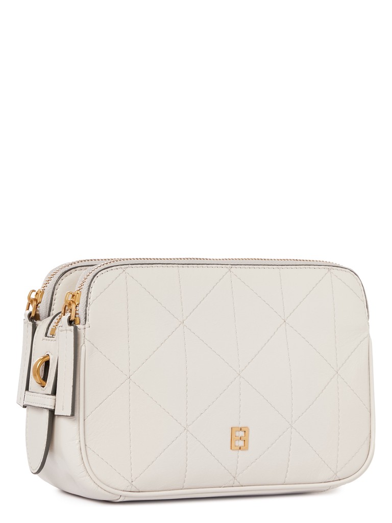 Женская сумка торговой марки Eleganzza выполнена из натуральной кожи с трендовой фактурой «мятый эффект» и мягким блеском — словно с внутренним сиянием. По всей поверхности сумки выполнена декоративная отстрочка. Модель закрывается на молнию. Внутри — три раздельных отделения. На задней стенке расположен карман. Сумка украшена фурнитурой с логотипом бренда. В комплекте — регулируемый съёмный плечевой ремень: максимальная длина — 83 см, ширина — 1,5 см.
